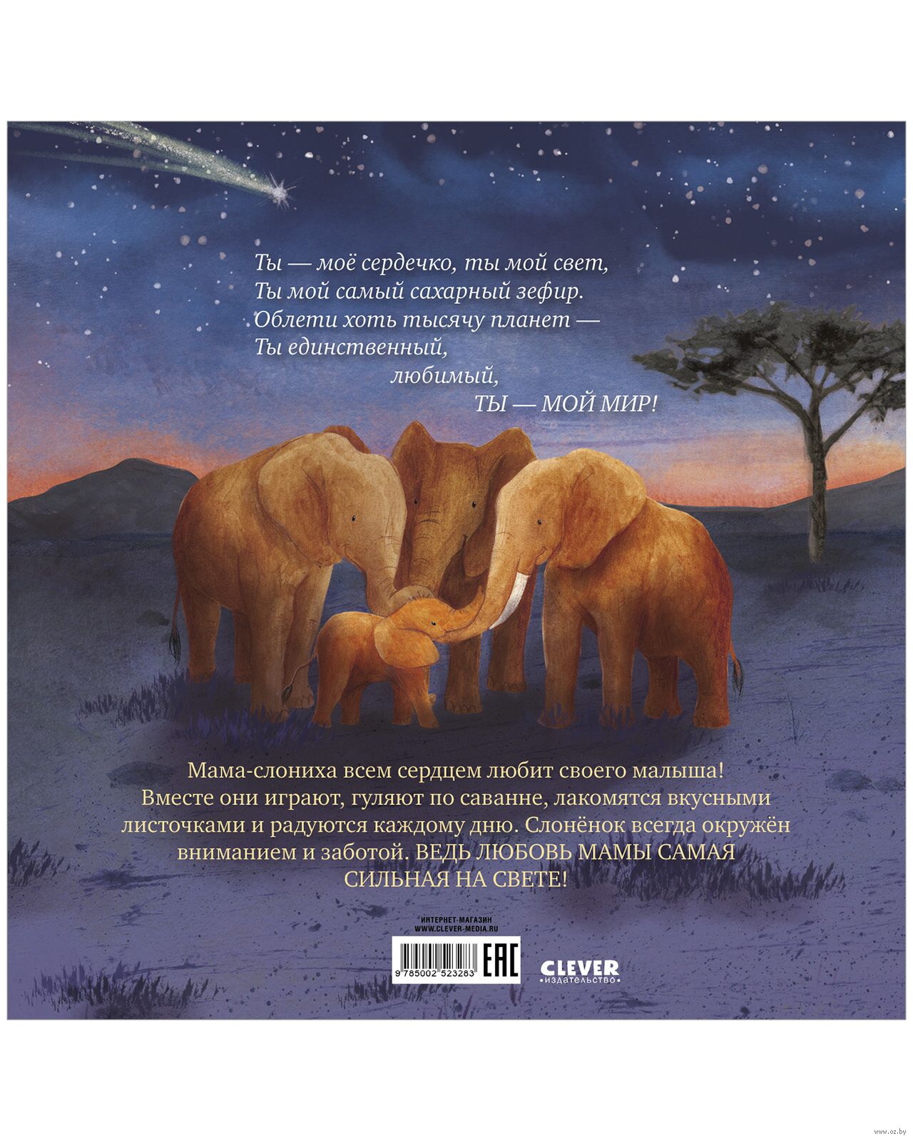 Мама-слониха всем сердцем любит своего малыша! Вместе они играют, гуляют по саванне, лакомятся вкусными листочками и радуются каждому дню. Слоненок всегда окружен вниманием и заботой. Ведь любовь мамы самая сильная на свете!