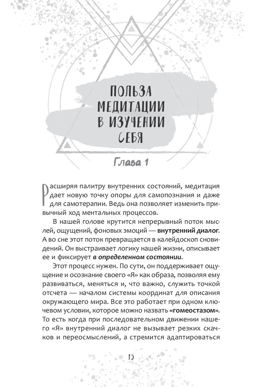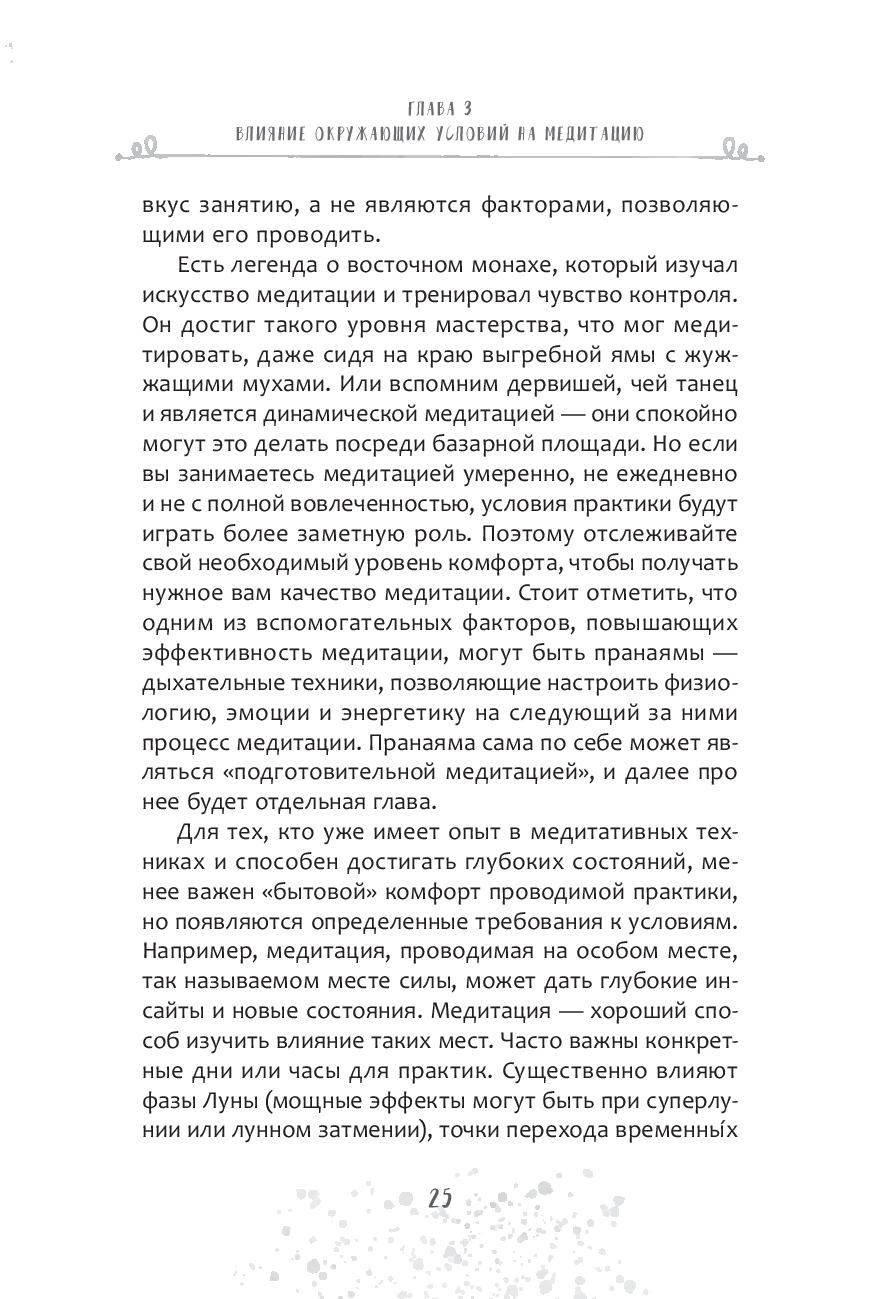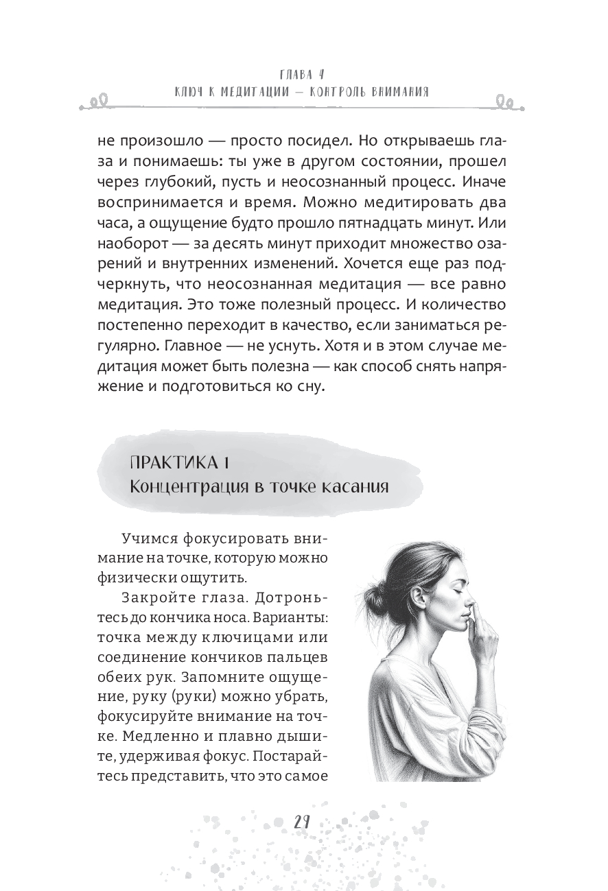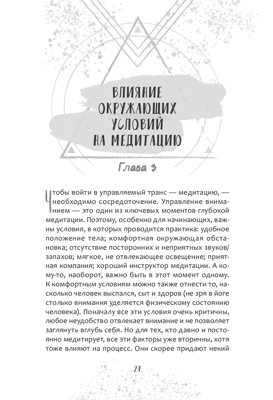 Здесь вы найдете необходимую теорию и эффективные практики: от базовой концентрации на точке или дыхании "по квадрату" до визуализаций, чакральных медитаций и даже друидских техник. Каждое упражнение сопровождается пояснениями и иллюстрациями, чтобы у вас не осталось сомнений, как именно их выполнять. Они будут доступны всем – с любым уровнем подготовки.