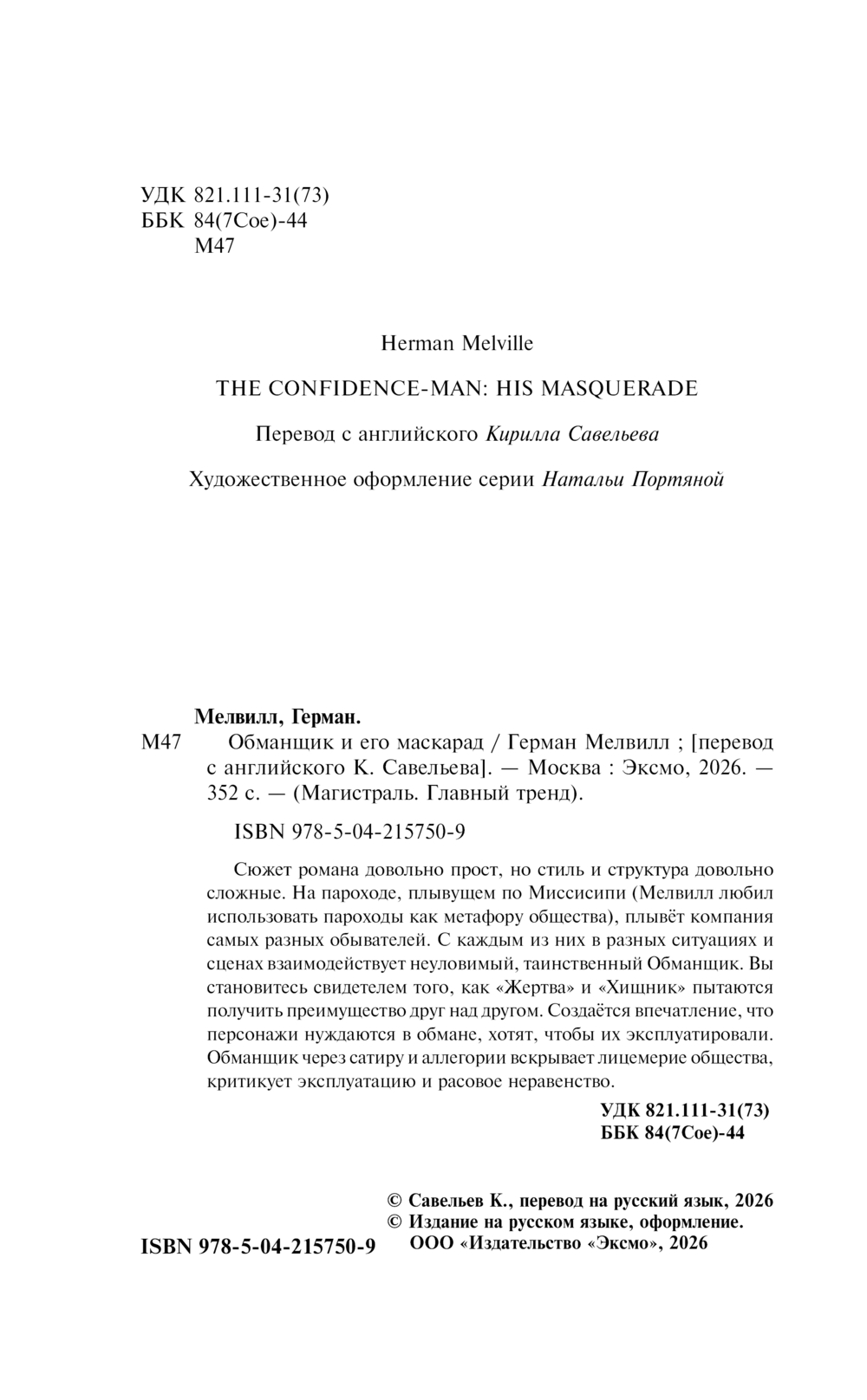 | Название в оригинале | The Confidence-Man: His Masquerade |