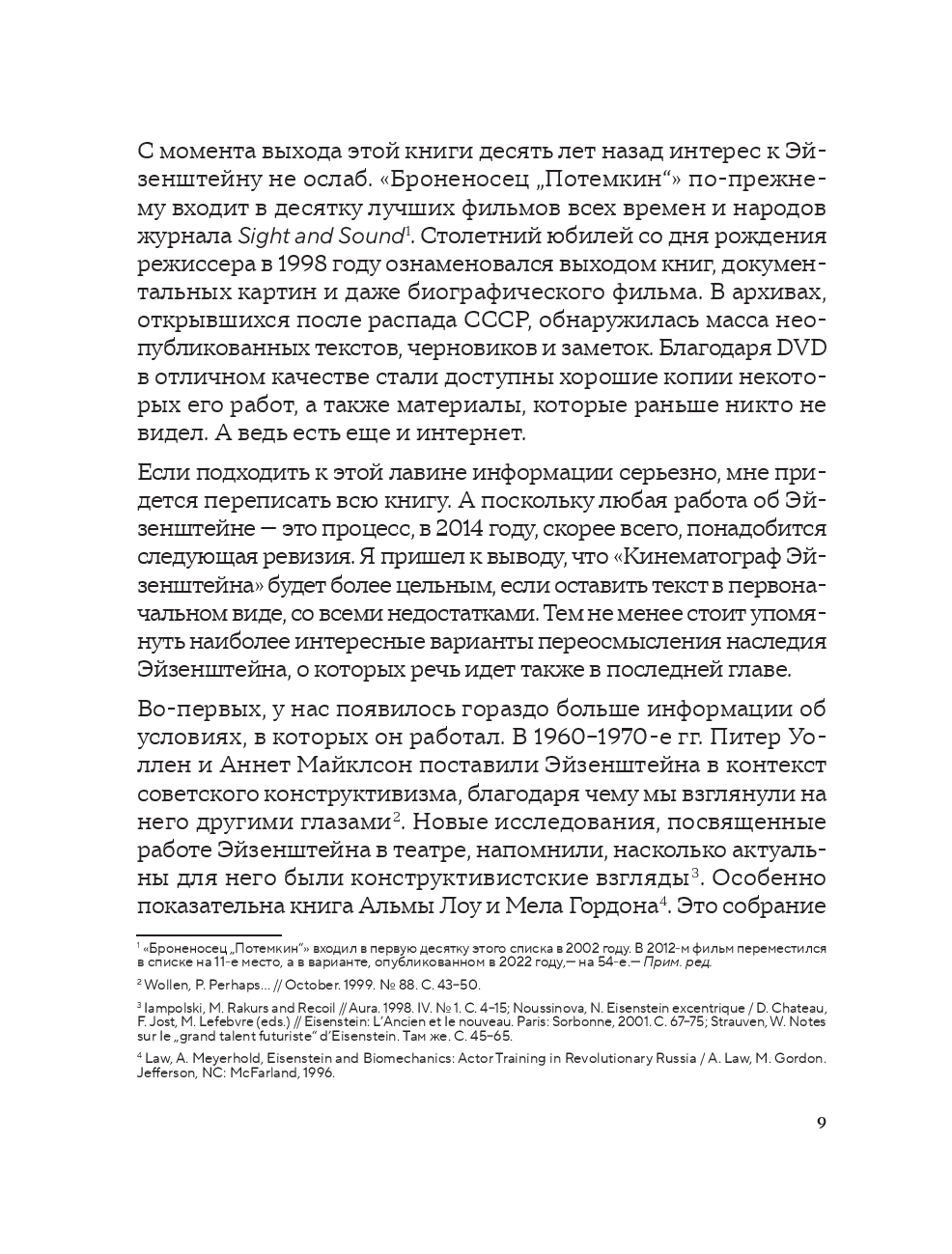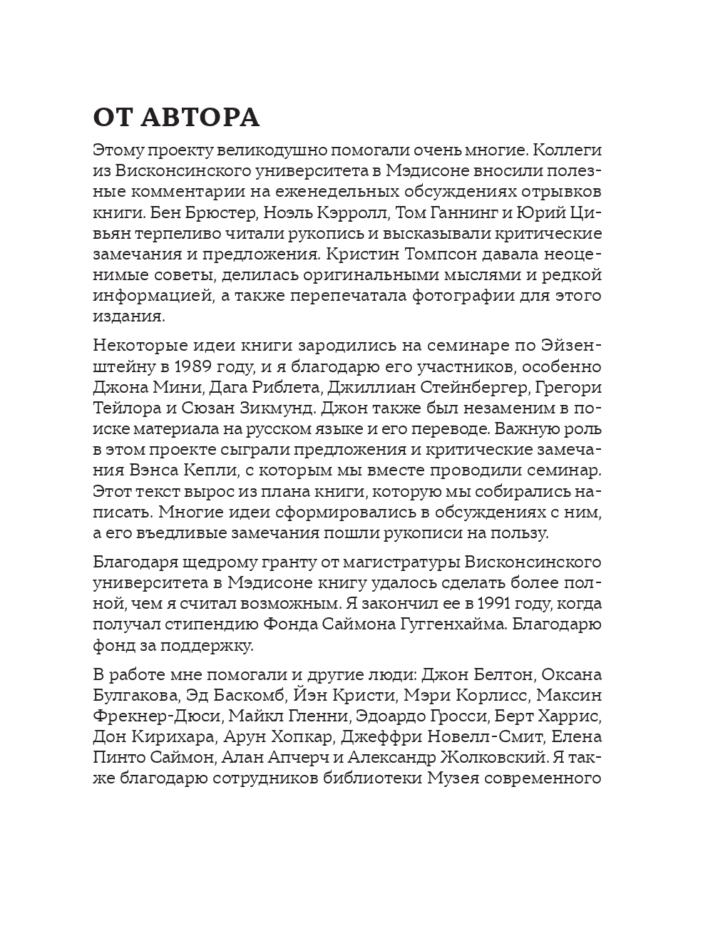 В центре внимания Бордуэлла – детальный анализ всех элементов мизансцены, композиции кадра, движения камеры, освещения, работы с актерами, звука и, конечно, монтажа. От ранних театральных экспериментов Эйзенштейна до "Ивана Грозного", охватывая все основные фильмы: "Стачка", "Броненосец Потемкин", "Октябрь", "Генеральная линия", "Александр Невский", "Иван Грозный" (части 1 и 2).