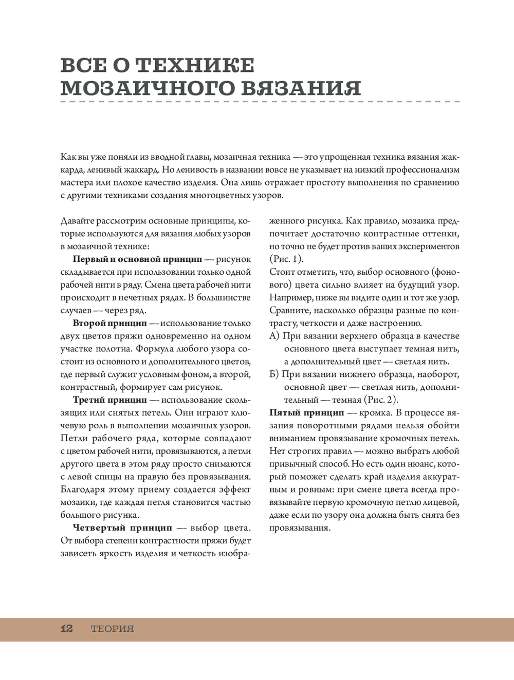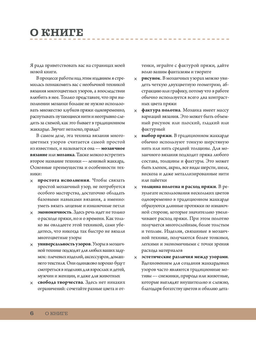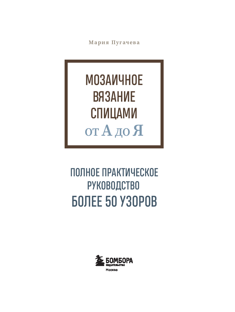 Полное иллюстрированное руководство по новейшему тренду – мозаичному вязанию спицами, – технике, которая позволяет создавать эффектные многоцветные узоры без сложных переплетений нитей. В книге Марии Пугачевой вы найдете все необходимое, чтобы начать вязать мозаику на профессиональном уровне: технику и приемы, авторские советы и секреты, более 50 оригинальных узоров, подробные инструкции по их выполнению, пошаговые мастер-классы по вязанию модных моделей, советы по подбору пряжи и современным цветовым сочетаниям. Подходит для любого уровня вязания – от новичков до профессионалов.