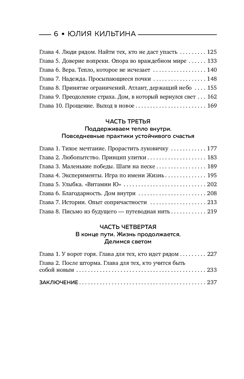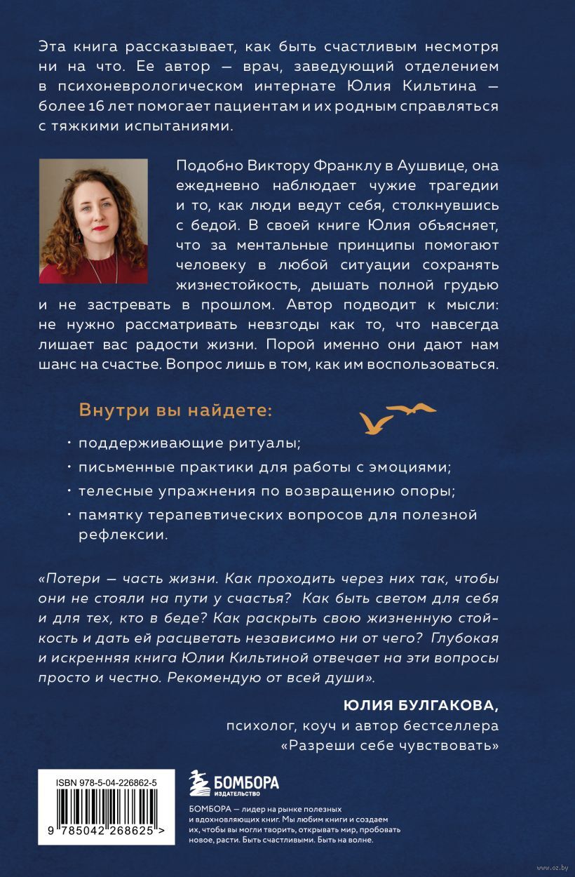 Юлия Кильтина – врач, заведующая отделением в хосписе и талантливый писатель. Более 16 лет она помогает пациентам и их родным справиться с тяжелыми испытаниями. В своей книге она делится историями реальных людей и рассказывает, как на руинах прошлого вырастить нового себя – сильного, открытого и по-настоящему счастливого.