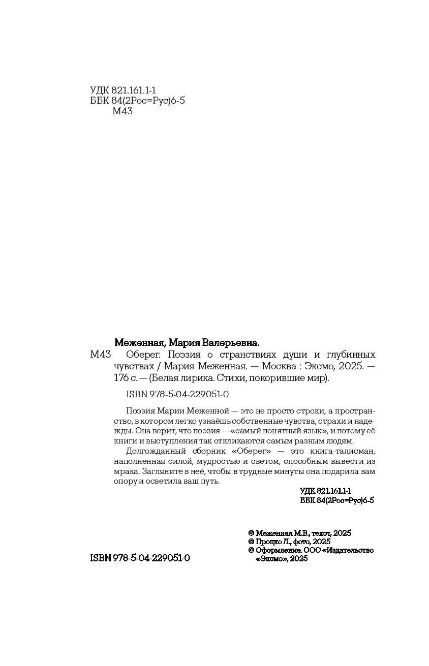 Долгожданный сборник "Оберег" – это книга-талисман, наполненная силой, мудростью и светом, способным вывести из мрака. Загляните в него, чтобы в трудные минуты он подарил вам опору и осветил ваш путь.