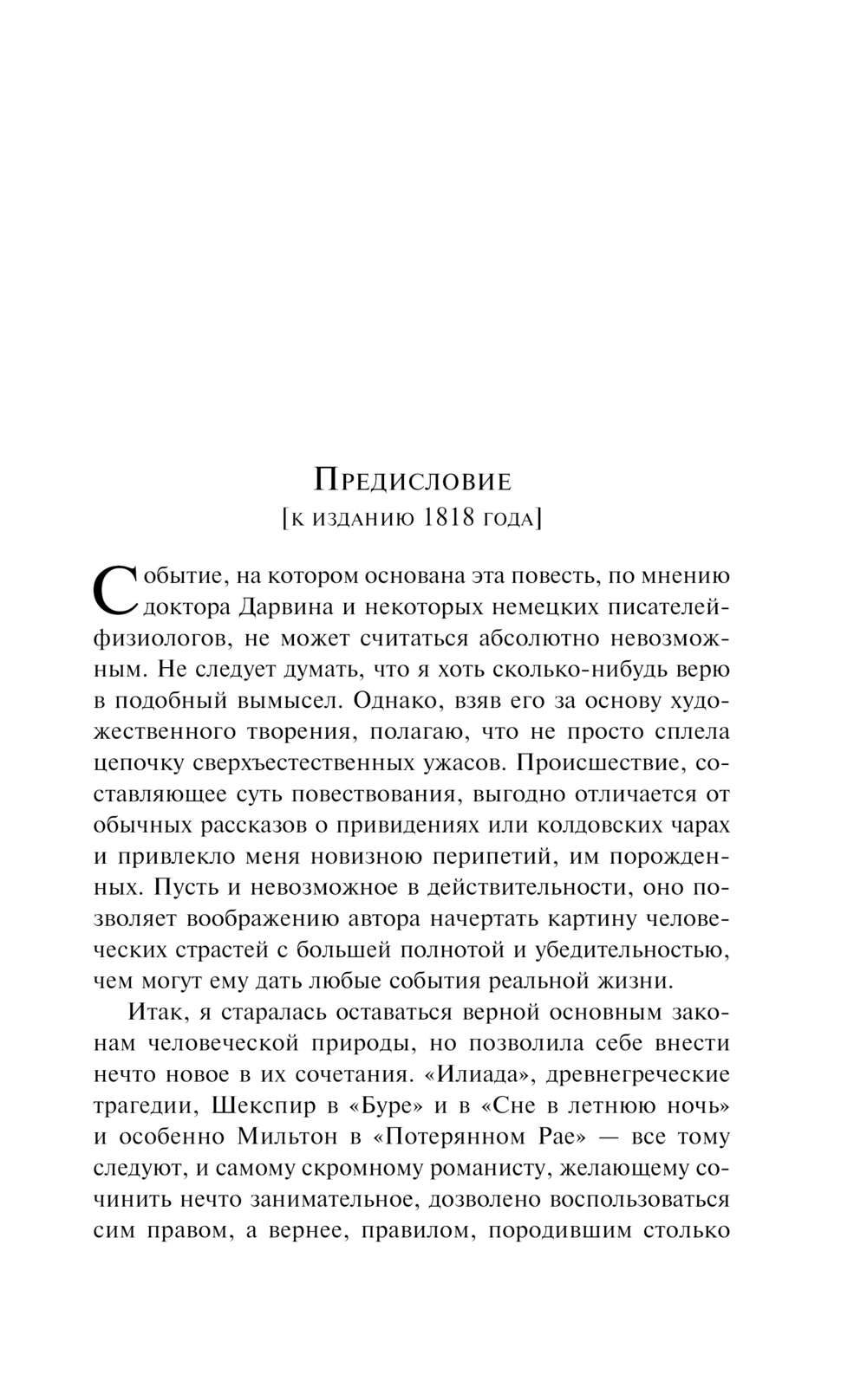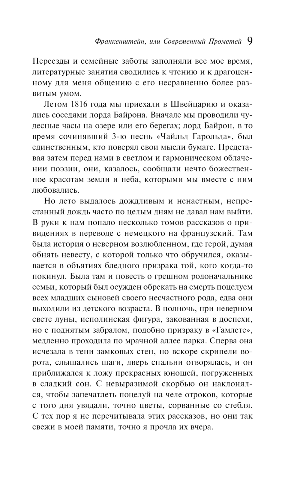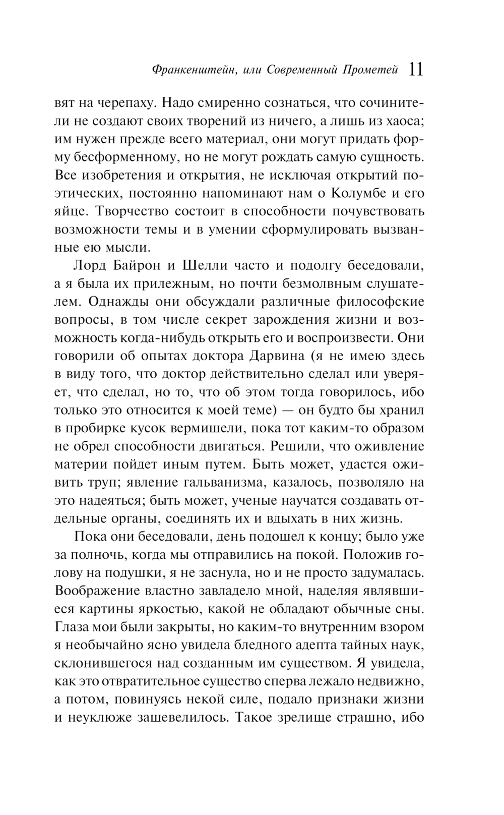 Замысел и первые эпизоды романа "Франкенштейн, или Современный Прометей" (1818) возникли как импровизация на заданную тему – сочинение страшных историй, инициированное лордом Байроном на швейцарской вилле Диодати летом 1816 года, а образ чудовища, сотворенного главным героем, явился автору – восемнадцатилетней англичанке Мэри Шелли – в ночном кошмаре. Однако, несмотря на юный возраст начинающей писательницы и почти случайные обстоятельства создания книги, "Франкенштейну" суждено было стать событием национальной и мировой литературы. Классика научно-фантастической прозы, шедевр романтической готики, оригинальный философский роман, источник знаковых образов современной культурной мифологии – таков далеко не полный ряд расхожих определений этого впечатляющего литературного дебюта. Трагический сюжет, придуманный автором, породил множество подражаний, переложений и продолжений – в художественной прозе, драматургии, театре и, разумеется, кинематографе.
