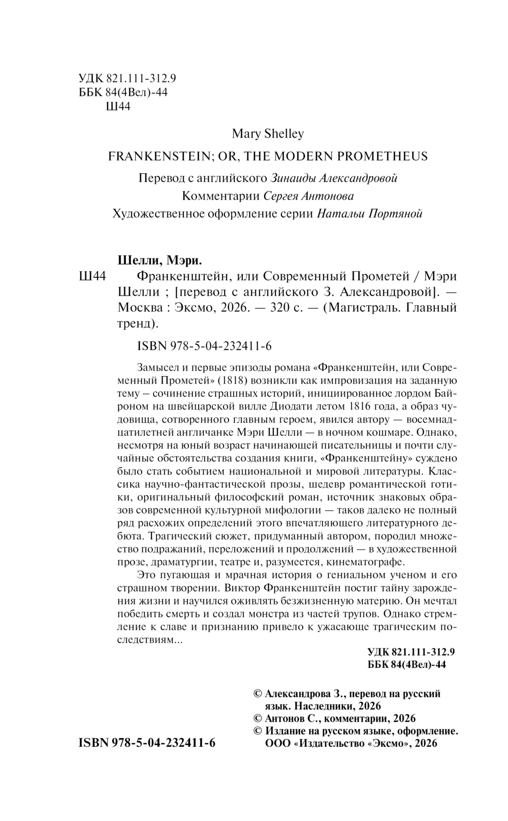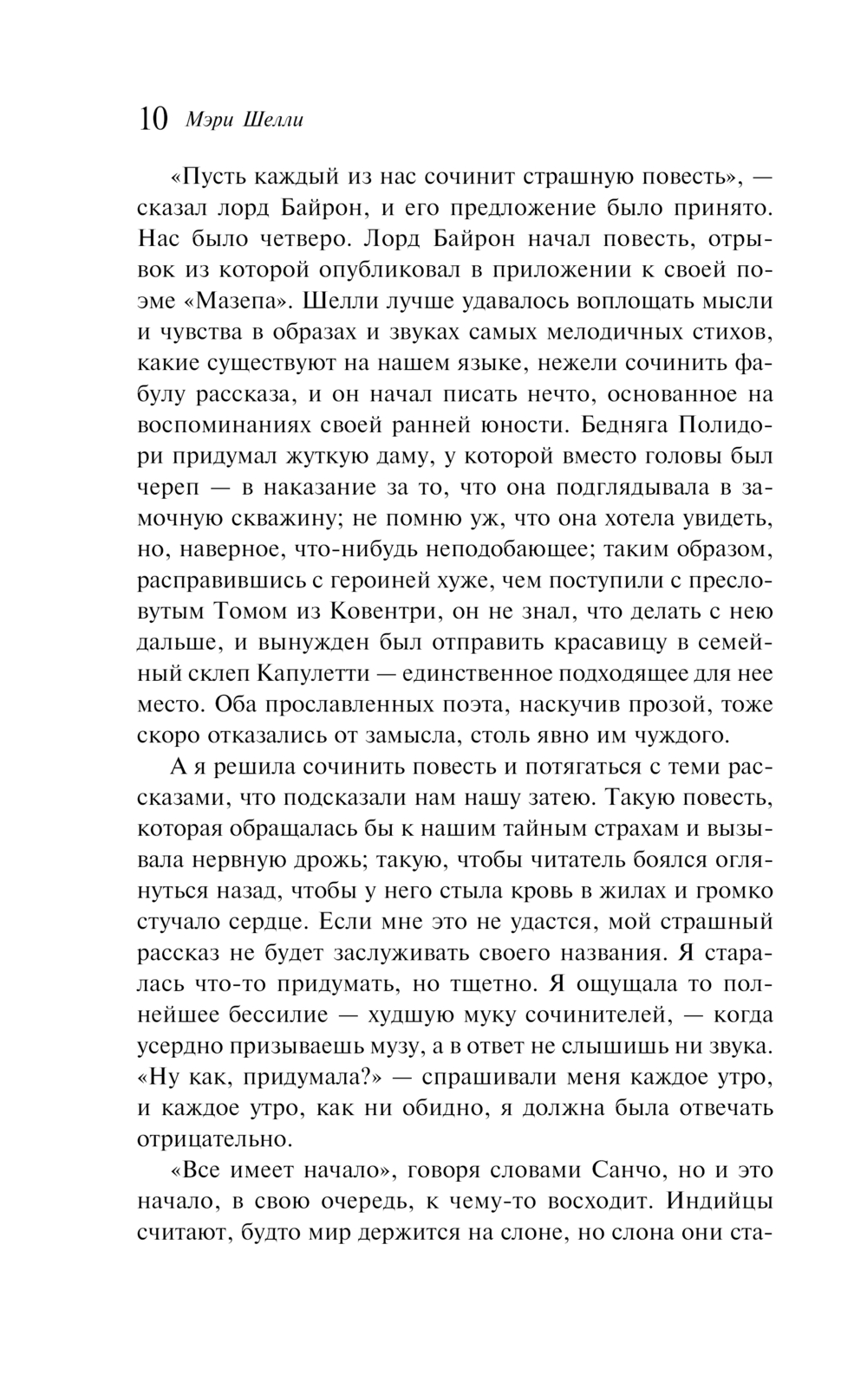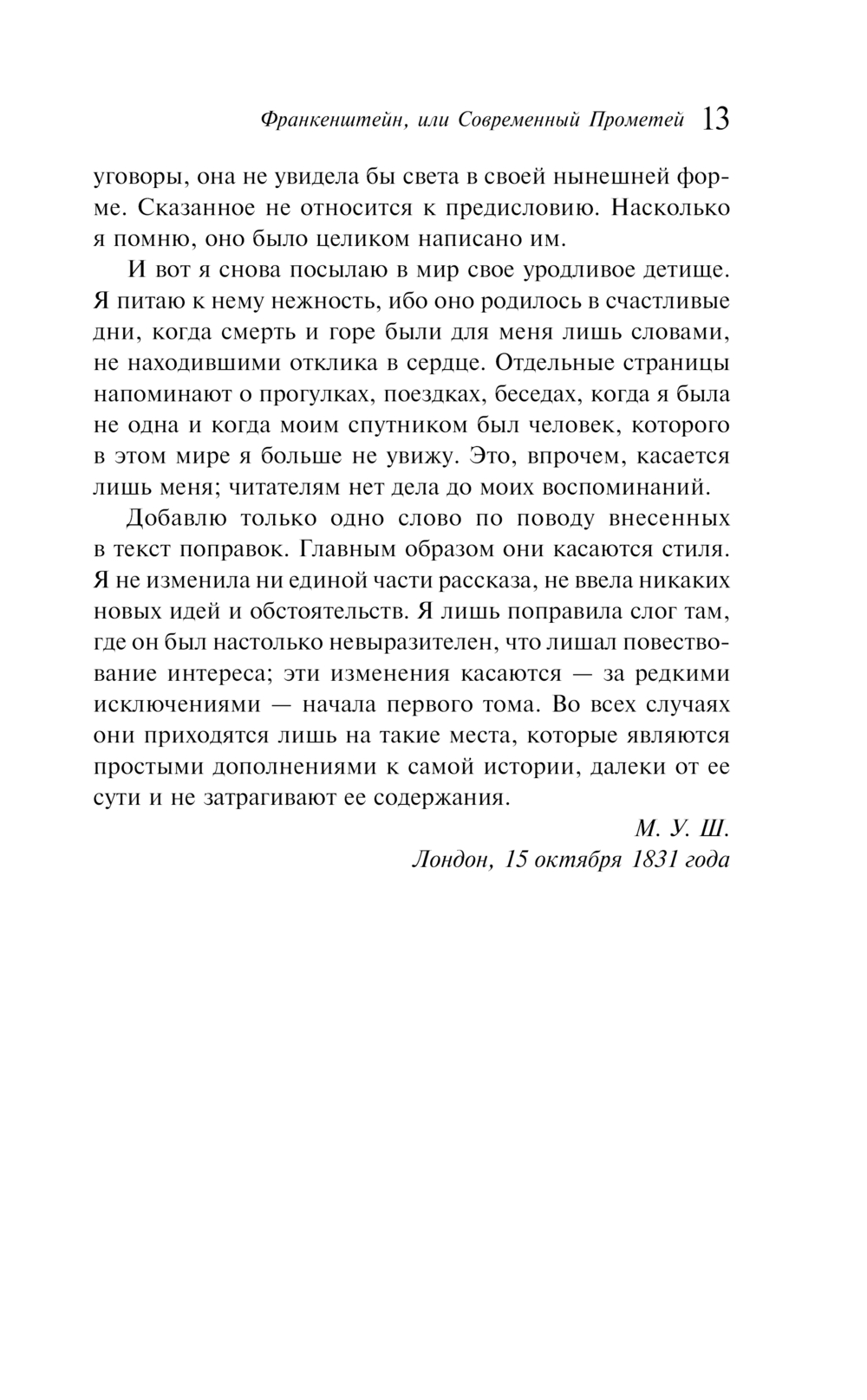 Замысел и первые эпизоды романа "Франкенштейн, или Современный Прометей" (1818) возникли как импровизация на заданную тему – сочинение страшных историй, инициированное лордом Байроном на швейцарской вилле Диодати летом 1816 года, а образ чудовища, сотворенного главным героем, явился автору – восемнадцатилетней англичанке Мэри Шелли – в ночном кошмаре. Однако, несмотря на юный возраст начинающей писательницы и почти случайные обстоятельства создания книги, "Франкенштейну" суждено было стать событием национальной и мировой литературы. Классика научно-фантастической прозы, шедевр романтической готики, оригинальный философский роман, источник знаковых образов современной культурной мифологии – таков далеко не полный ряд расхожих определений этого впечатляющего литературного дебюта. Трагический сюжет, придуманный автором, породил множество подражаний, переложений и продолжений – в художественной прозе, драматургии, театре и, разумеется, кинематографе.