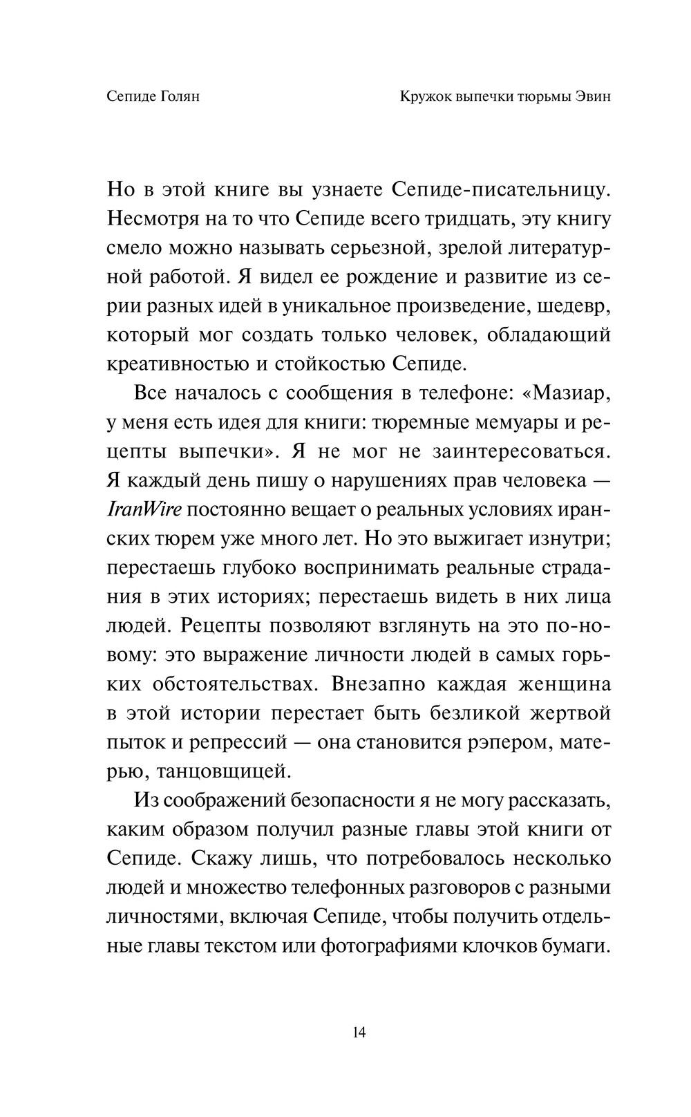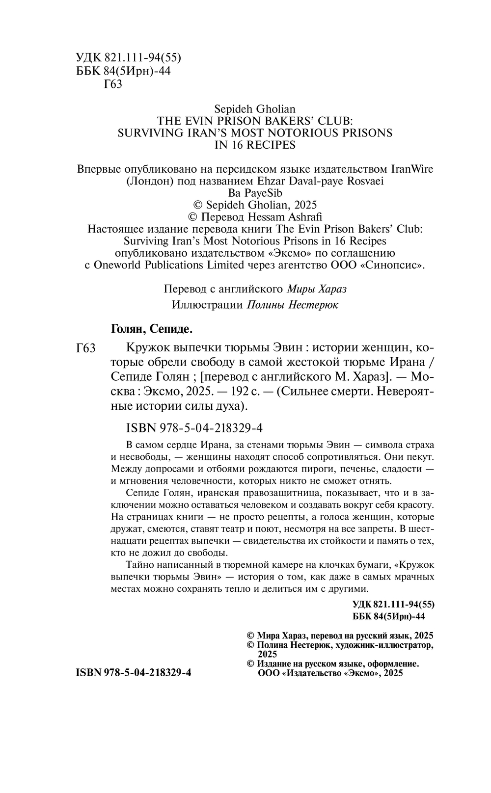Сепиде Голян, иранская правозащитница, показывает, что и в заключении можно оставаться человеком и создавать вокруг себя красоту. На страницах книги – не просто рецепты, а голоса женщин, которые дружат, смеются, ставят театр и поют, несмотря на все запреты. В шестнадцати рецептах выпечки – свидетельства их стойкости и память о тех, кто не дожил до свободы.