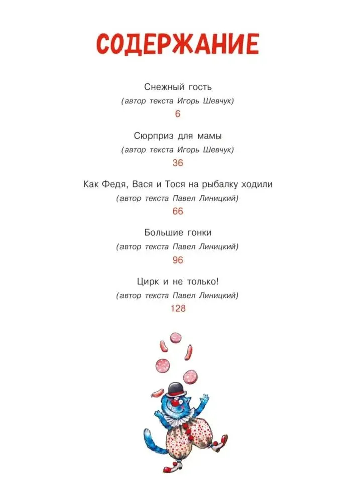 В этой книге собраны истории, полюбившиеся читателям, и именно с них в Котофеевке начались настоящие приключения! Наверняка вы уже слышали про то, как Федя, Вася и Тося отправились на рыбалку, разгромили курятник Семёновны, сбежали с цирком и устроили сюрприз для мамы? Если эти сюжеты уже знакомы вам, то, конечно, вы полюбили нашу дружную троицу! Вот и котофеевцы их обожают: даже когда котята шалят, они умеют исправлять положение и могут собрать всех соседей за большой праздничный стол!