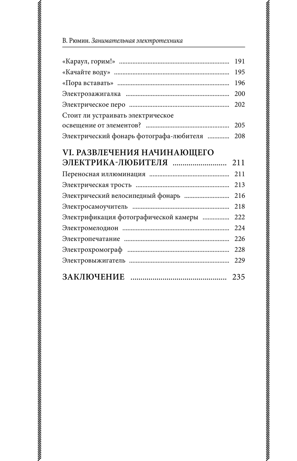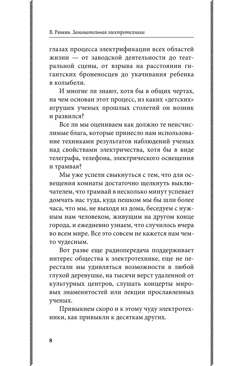 Книга "Занимательная электротехника" Владимира Рюмина приглашает читателя в мир электричества через живые опыты и простые конструкции. Это мастерская домашних устройств: от электрофора и простейшего электромотора до комнатных сигнализаций. Пошаговые сборки, ясные объяснения и напоминания о безопасности делают занятия доступными для дома и класса, а "молния в миниатюре", искры и движущиеся модели превращают любопытство в устойчивый интерес к электротехнике.