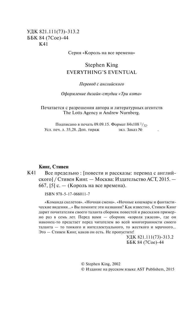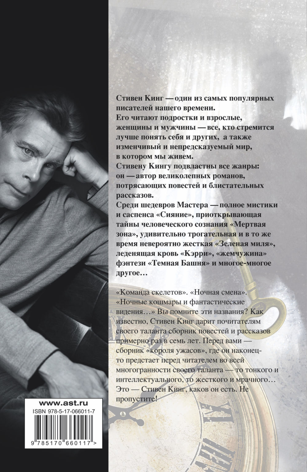 "Команда скелетов", "Ночная смена", "Ночные кошмары и фантастические видения..." Вы помните эти названия? Как известно, Стивен Кинг дарит почитателям своего таланта сборник повестей и рассказов примерно раз в семь лет. Перед вами – сборник "короля ужасов", где он наконец-то предстает перед читателем во всей многогранности своего таланта – то тонкого и интеллектуального, то жесткого и мрачного... Это – Стивен Кинг, каков он есть. Не пропустите!