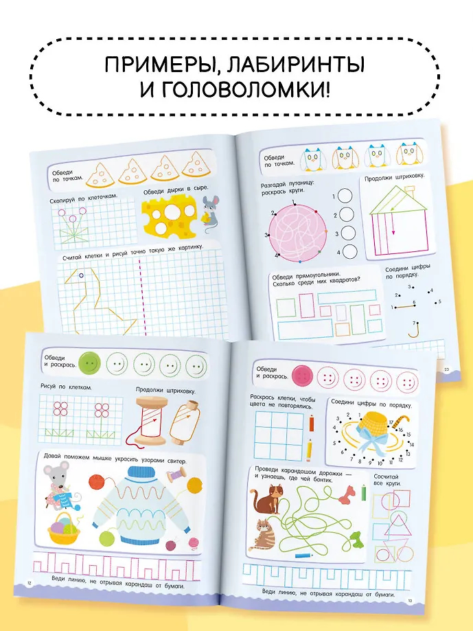 "500 увлекательных заданий по клеточкам и точкам для детей 5-7 лет" – много-много графических головоломок, раскрасок, игр с цифрами, находилок, задачек на логику и сообразительность. Предложите весёлой компании фантазировать и дорисовывать, сравнивать мозаики в поисках нужных фрагментов, считать, размышлять, находить закономерности, копировать по клеточкам и точкам, украшать картинки узорами, проходить лабиринты – такие интеллектуальные занятия расширяют кругозор и словарный запас, формируют графические навыки, развивают мышление, память, внимание, наблюдательность, смекалку и творческие способности. Ребёнок откроет первую страницу – и уже не сможет оторваться!