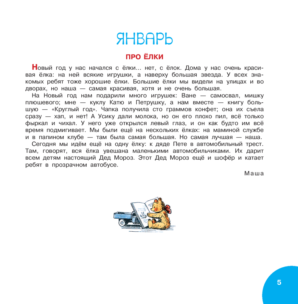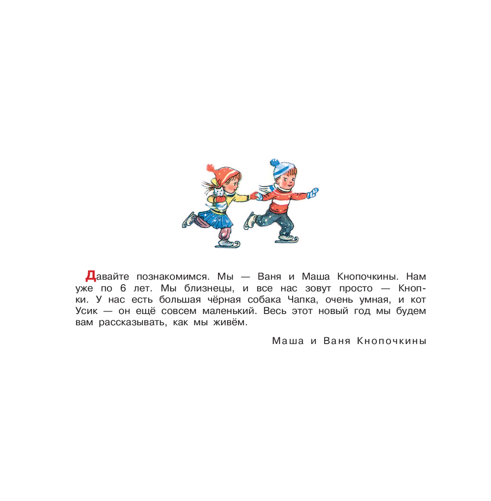 В книгу вошёл цикл "Времена года" из двеннадцати рассказов о приключениях близнецов Вани и Маши Кнопочкиных, их собаки Чапки и кота Усика. Также на страницах книги малышей ждёт много вопросов по прочитанному и интересных заданий.