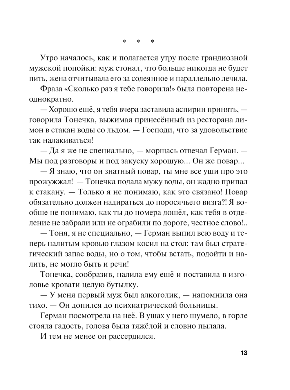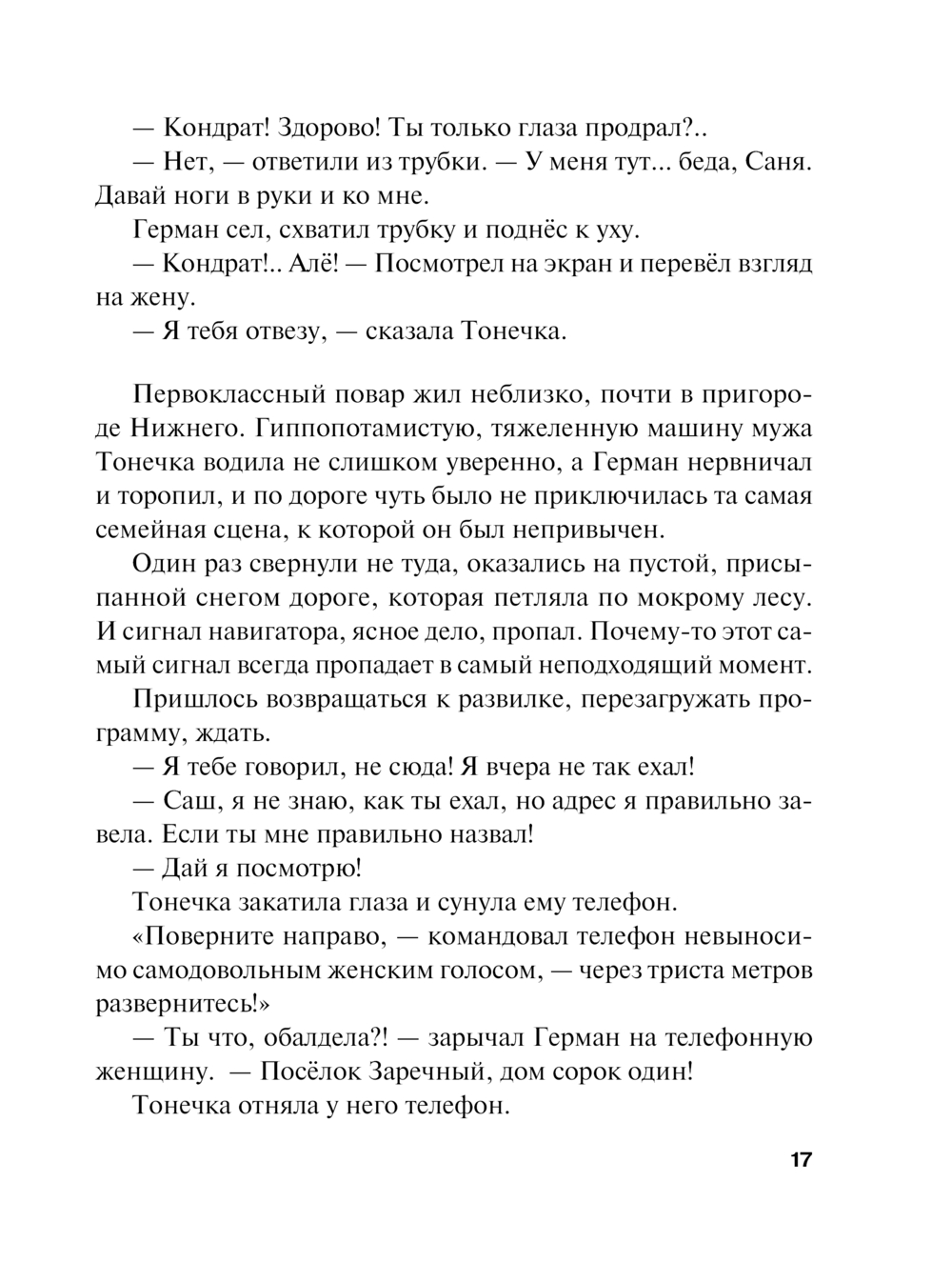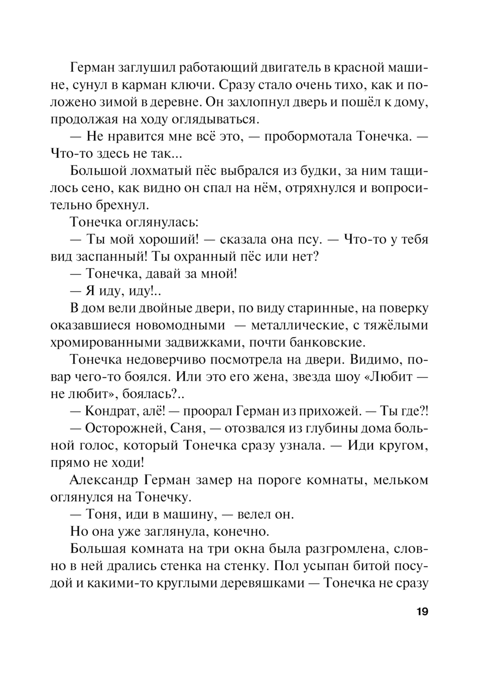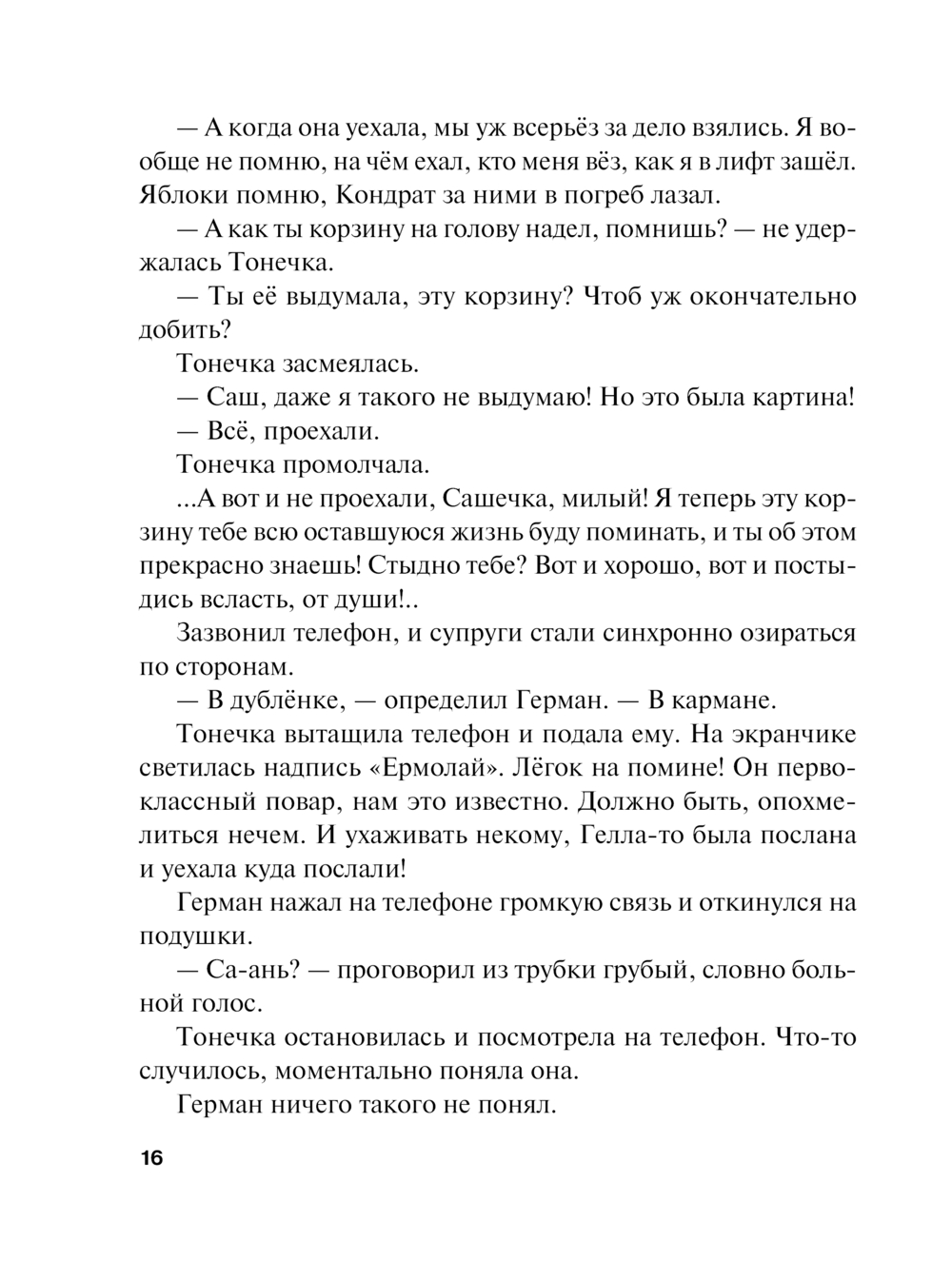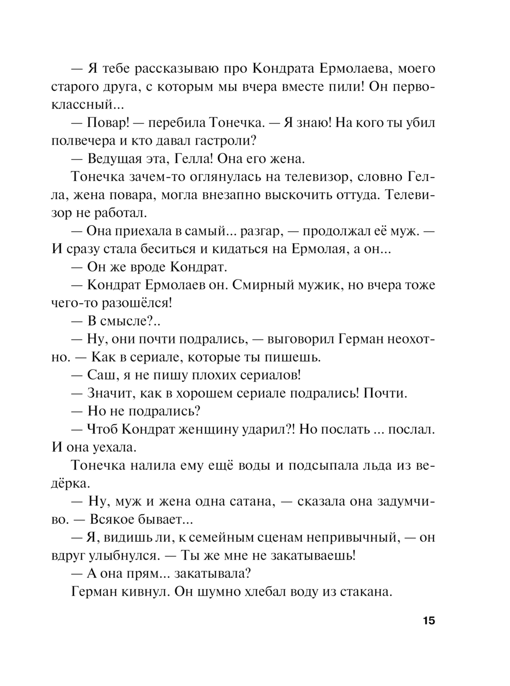 Тонечка – любящая и любимая жена, дочь и мать. Счастливица, одним словом! А еще она известный сценарист и может быть рядом со своим мужем-режиссером всегда и везде – и на работе, и на отдыхе. И живут они душа в душу, и понимают друг друга с полуслова… Или Тонечке только кажется, что это так? Однажды они отправляются в прекрасный старинный город. Её муж Александр должен встретиться с давним другом, которого Тонечка не знает. Кто такой этот Кондрат Ермолаев? Муж говорит – повар, а похоже, что бандит. Во всяком случае, как раз в присутствии столичных гостей его задерживают по подозрению в убийстве жены. Александр явно что-то скрывает, встревоженная Тонечка пытается разобраться в происходящем сама – и оказывается в самом центре детективной истории, сюжет которой ей, сценаристу, совсем непонятен. Ясно одно: в опасности и Тонечка, и ее дети, и идеальный брак с прекрасным мужчиной, который, возможно, не тот, за кого себя выдавал …