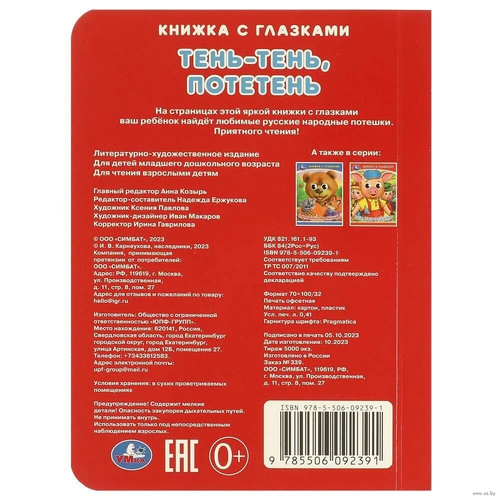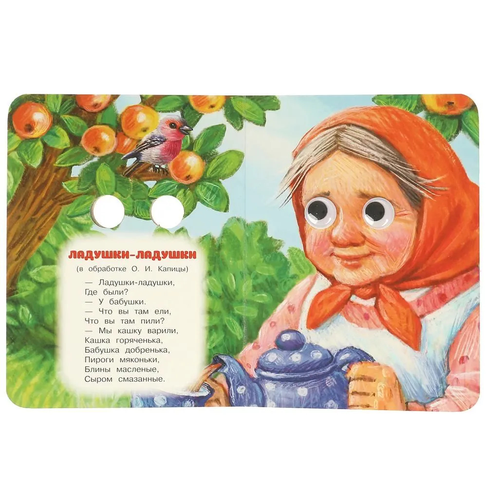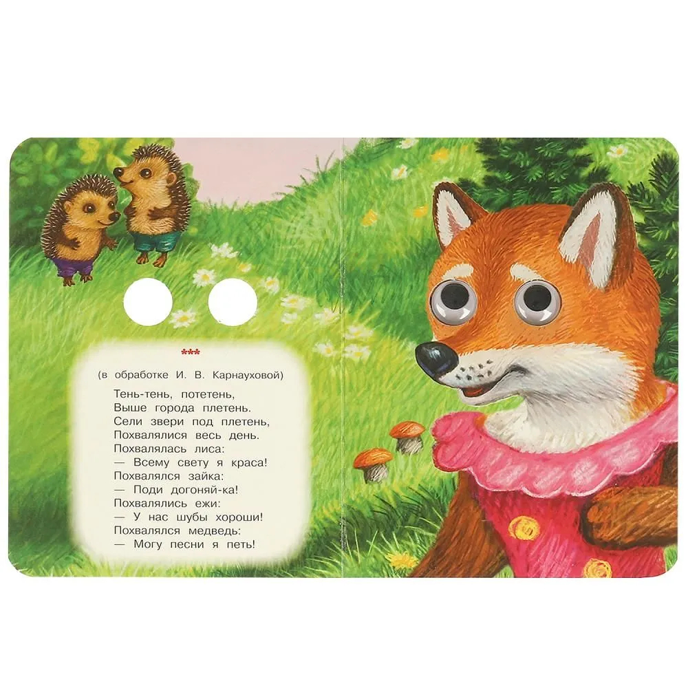 На страницах этой яркой книги ребёнка ждёт встреча с милыми животными – героями любимых русских народных потешек. Большие красочные картинки и подвижные глазки, благодаря которым персонажи выглядят совсем как живые, вызовут полный восторг малыша. Компактный размер книги позволяет взять её с собой в путешествие.