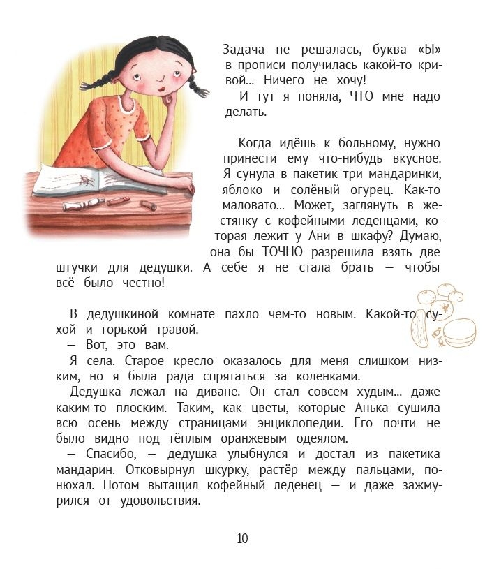 Вообще Женя точно такая же, как все другие семилетние девочки. Она терпеть не может, когда её разглядывают или считают какой-то особенной. Она умеет чистить картошку так, чтобы шкурка превращалась в тонкие длинные ленточки. Умеет пришивать пуговицы – почти так же красиво, как папа. А ещё у неё отлично получается рассказывать разные истории – потому что с ней всё время случается что-нибудь интересное...