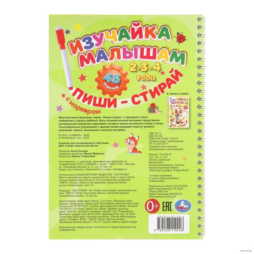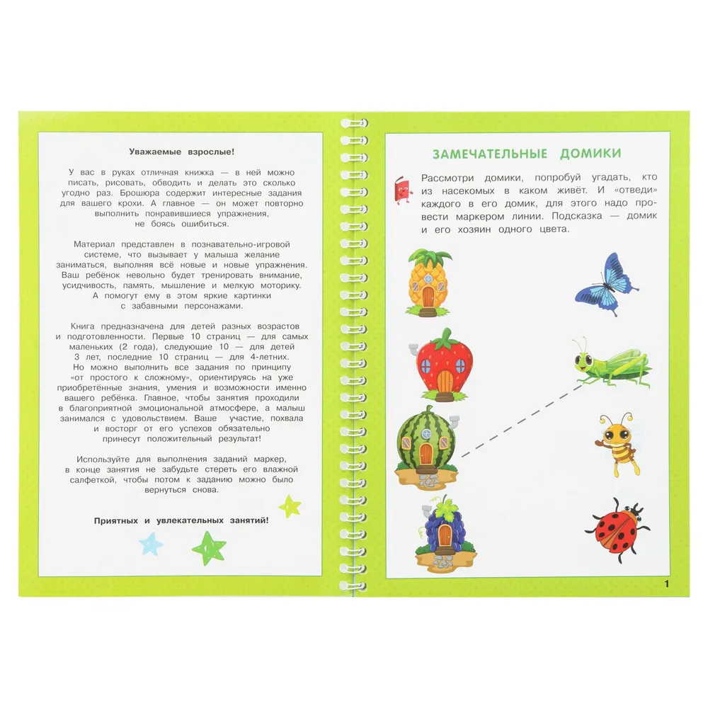 Серия брошюр предполагает многоразовое использование. Весь познавательный материал представлен интересными игровыми заданиями, которые можно выполнять снова и снова. Для большего удобства в комплекте уже предусмотрен маркер, на колпачке которого находится специальная губка для стирания написанного.