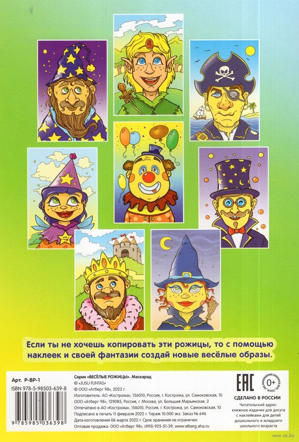 Фантазируй и играй вместе с увлекательной книжкой "Веселые рожицы с наклейками". Придумай своих собственных персонажей с помощью листов с наклейками и цветным изображением героев. Играй один, с друзьями или всей семьей! Придумай самую смешную рожицу!