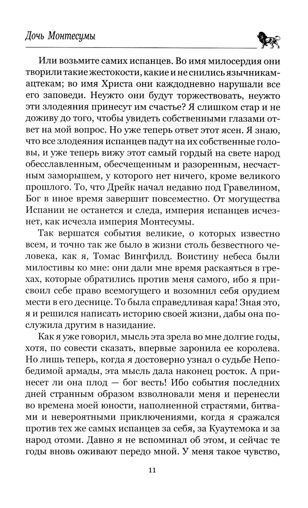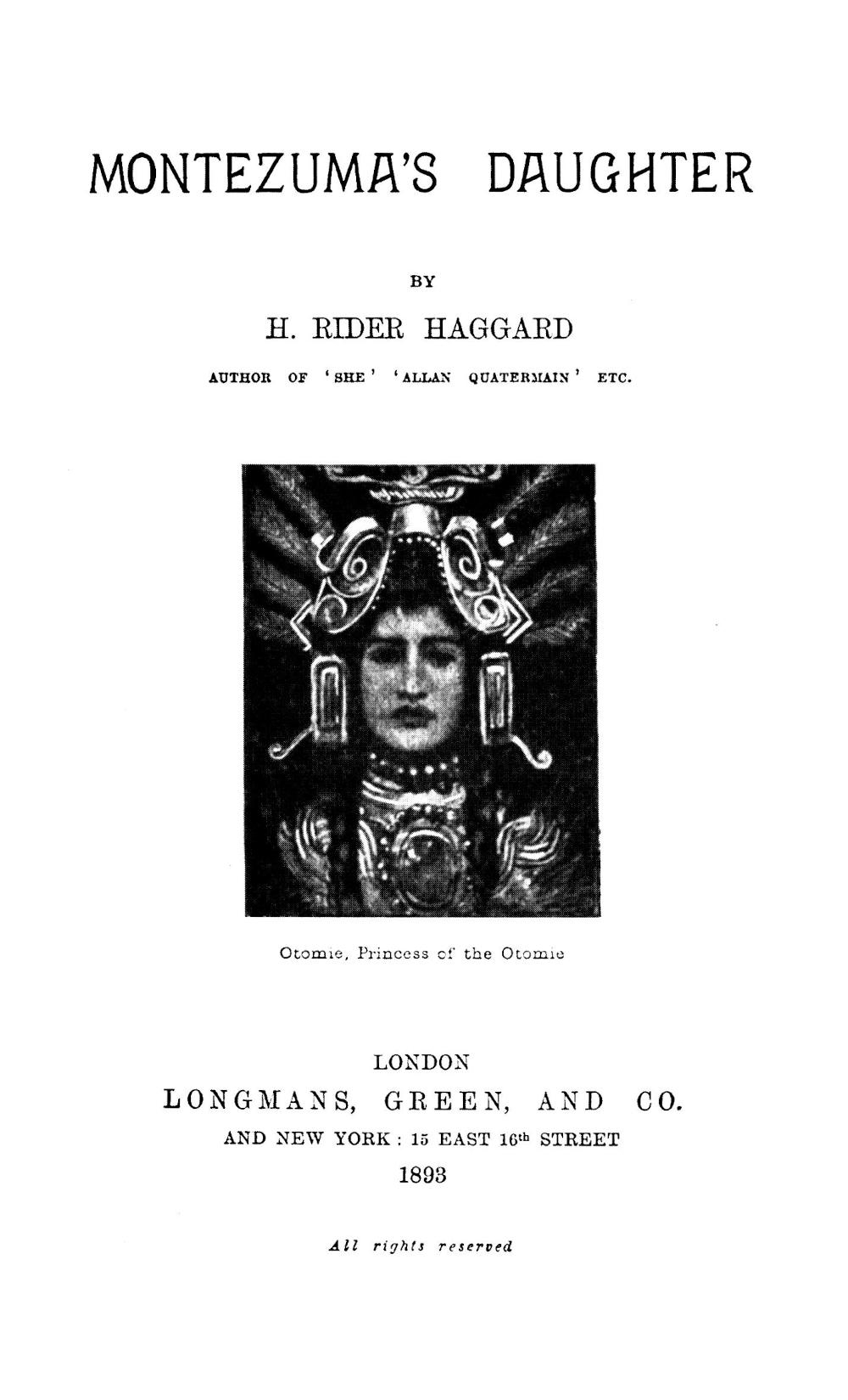 В очередной том избранных произведений Генри Райдера Хаггарда включен роман "Дочь Монтесумы", дополненный оригинальным посвящением и комментариями автора.