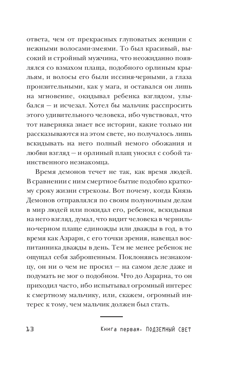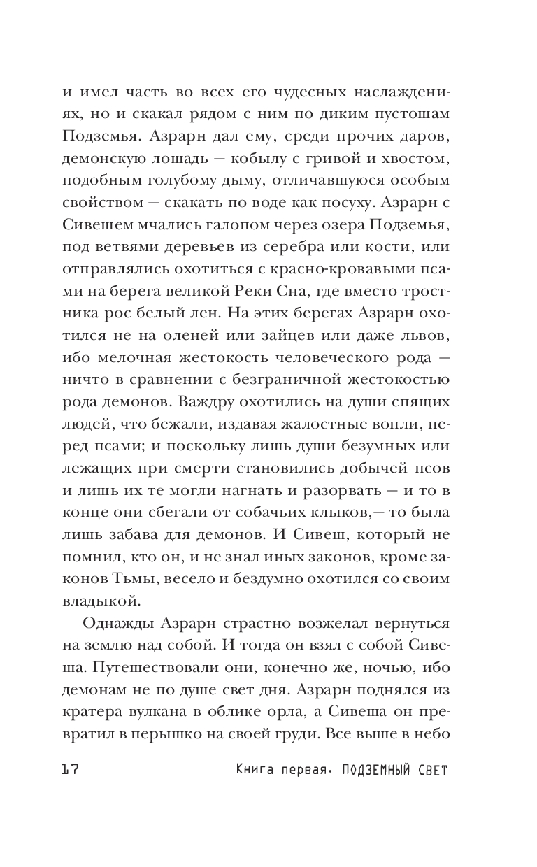 Это сказания о тех временах, когда земля еще была плоской, о ее царствах и людях, а также о Подземье, где обитают демоны, и Надземье, где обитают боги. А еще это рассказ об Азрарне, повелителе Подземья, Владыке Ночи, который играет с человеческими судьбами, как с игрушками, свергает правителей и строит козни, но на Плоской Земле даже бессмертных властителей может настичь воздаяние. Это история о волшебном ожерелье, которое принесло неисчислимые страдания, о слепом поэте Казире, бросившем вызов самому Азрарну, о великой царице и ее невероятной судьбе, и о страшной каре, что в результате деяний многих героев поразила весь мир. Это легенды и мифы иного пространства, где изысканность, напоминающая сказки "Тысячи и одной ночи", соседствует с настоящим полетом фантазии, а увлекательный прихотливый сюжет обретает возвышенность подлинной притчи.