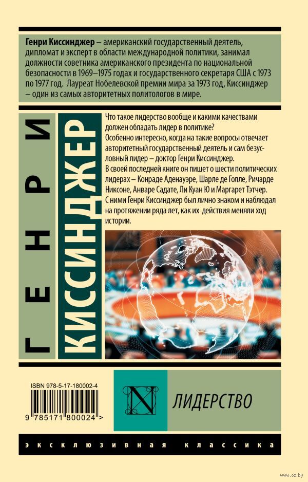 В своей последней книге он пишет о шести политических лидерах – Конраде Аденауэре, Шарле де Голле, Ричарде Никсоне, Анваре Садате, Ли Куан Ю и Маргарет Тэтчер.