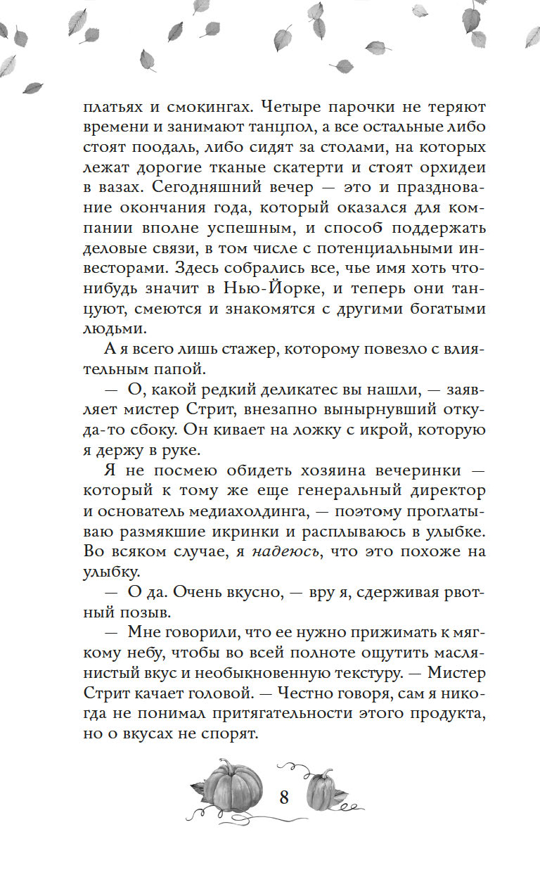 Атмосферные улочки с сахарными кленами и оранжевыми хризантемами, кофейня с котиками и ежегодный Тыквенный бал. Кажется, что городок Брэмбл-Фолс – самое уютное место на свете! Вот только Эллис, которая недавно переехала сюда, так не считает. Она привыкла жить в мегаполисе и спокойствие маленького городка кажется ей невыносимым. Но, возможно, ситуацию исправят пряный латте, горячая выпечка и… не менее горячий бариста Купер! Несколько лет назад Эллис и Купер провели вместе лучшее лето. А потом исчезли из жизни друг друга. Теперь парень делает вид, что не знает Эллис. Ну и пусть! Холодный и неприветливый Купер все равно ей не пара. Или Эллис ошибается и этот парень совсем не такой?