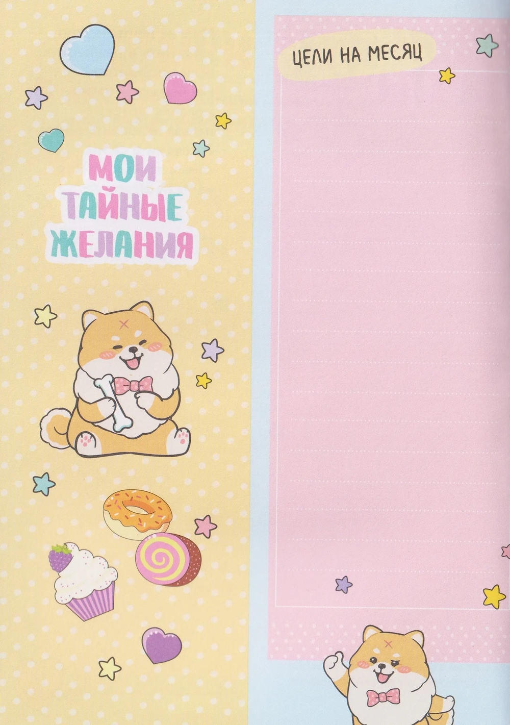 Внутри тебя ждут интересные опросы и тесты, которые помогут лучше узнать себя и друзей, а также удобные анкеты для записи памятных моментов и идей для совместных планов. Этот дневничок – отличный способ сохранить теплые воспоминания и весело провести время в компании милых сиба ину!