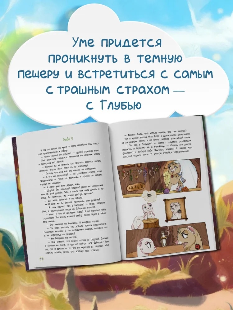 Белоснежной норке Уме пора выбирать своего комеса – компаньона на всю жизнь. Братья насмехаются над ней, и она обещает им приручить паучка – самого редкого комеса. Но чтобы найти паучка, Уме придётся проникнуть в тёмную пещеру и встретиться с самым страшным страхом – с Глубью. В путешествие она берёт с собой друга – хорька Листика. Вместе они проходят испытания, преодолевают свои страхи, и Ума понимает: чтобы справиться с Глубью, нужно перестать её бояться.