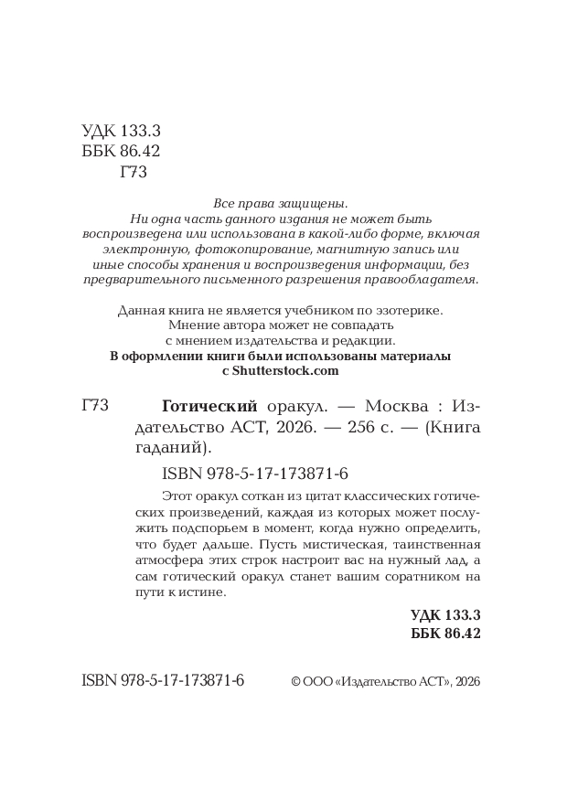 Этот оракул соткан из цитат классических готических произведений, каждая из которых может послужить подспорьем в момент, когда нужно определить, что будет дальше. Пусть мистическая, таинственная атмосфера этих строк настроит вас на нужный лад, а сам готический оракул станет вашим соратником на пути к истине.