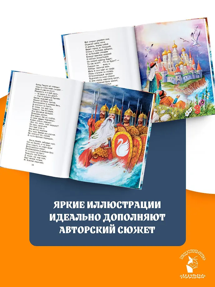 Сказки А. С. Пушкина – волшебные, напевные, почти народные. И это не случайно. Ведь именно из народных сказок и преданий великий поэт черпал вдохновение. "Сказка о царе Салтане" именно такая. Написанная в 1831 году, она по-прежнему остаётся одной из самых читаемых у А. С. Пушкина. Кроме того, сказка входит в программы обязательного и внеклассного чтения и рекомендательные списки по литературе для детей. Также в книге представлены несколько стихотворений поэта.