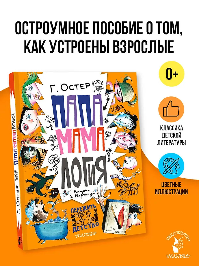 "Папамамалогия" – наука о взрослых. И если детей воспитывают взрослые, то как детям быть со взрослыми, как их лучше понимать? Чтобы ответить на эти вопросы, Григорий Остер написал эту весёлую и увлекательную книгу. Из книги можно узнать, как устроены взрослые, какие у них характеры, привычки, как они выглядят, как ведут хозяйство, чего стоит от них ожидать, а чего опасаться, и многое другое!
