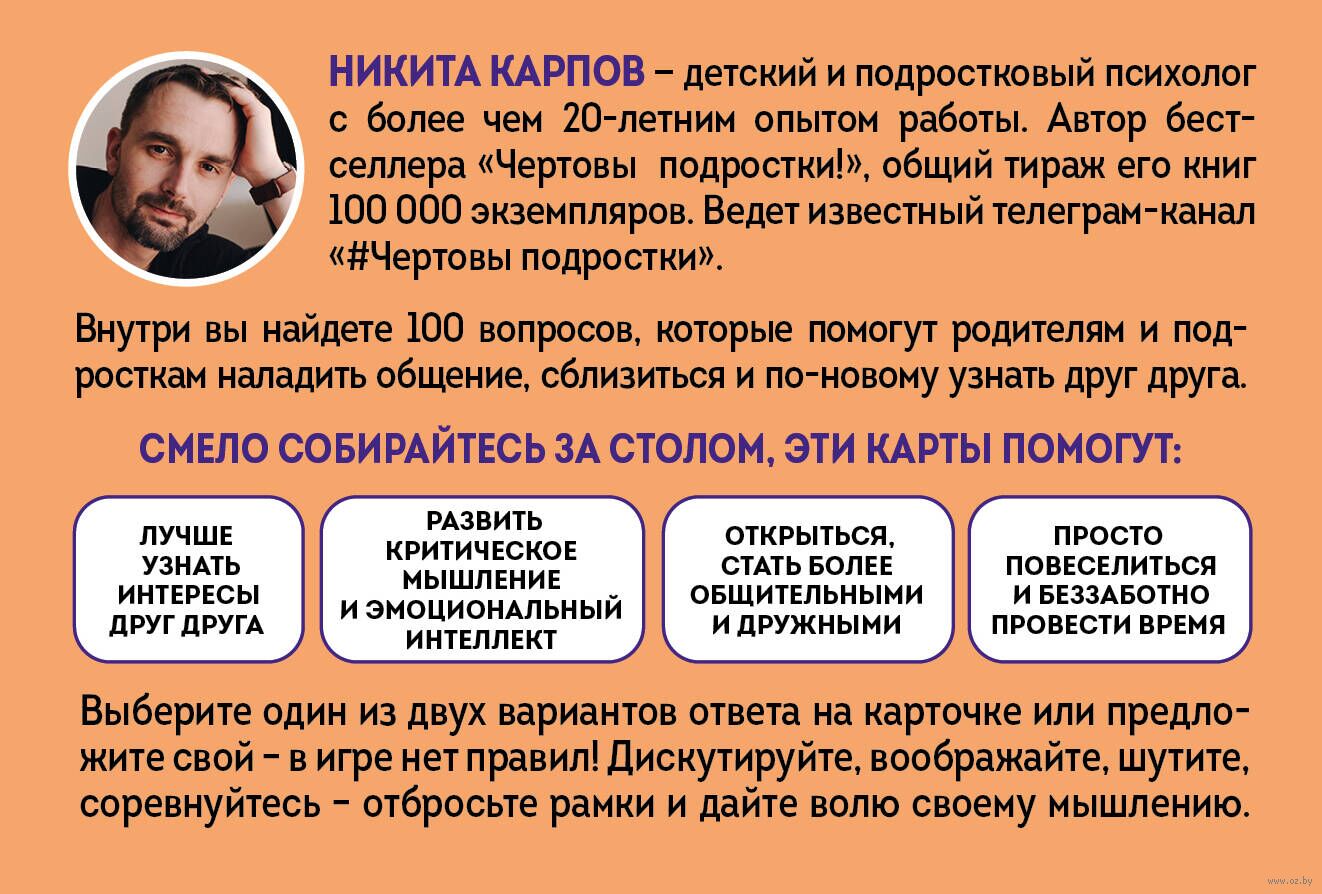 Психолог Никита Карпов поможет наладить общение с подростком с помощью 100 увлекательных вопросов, где из двух вариантов ответа нужно выбрать только один.