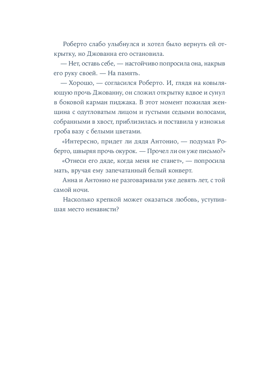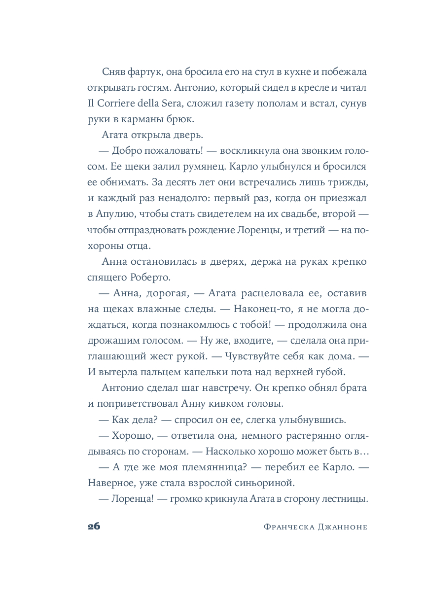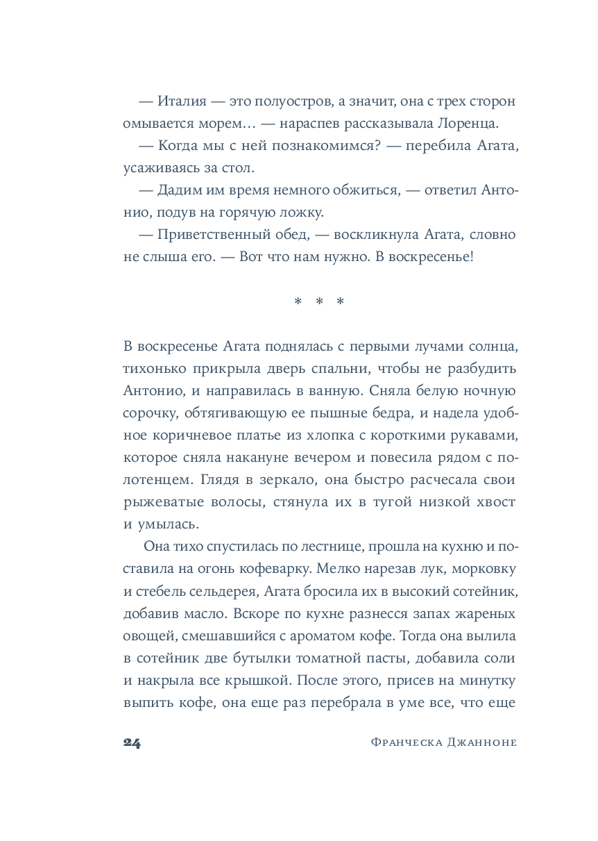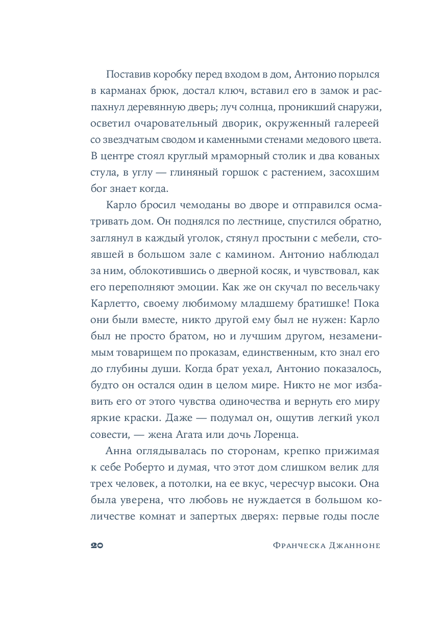 Дебютный роман молодой итальянской писательницы Франчески Джанноне, ставший литературной сенсацией в Италии – раскуплено уже более 580 000 экземпляров, а права на издание проданы 37 странам.