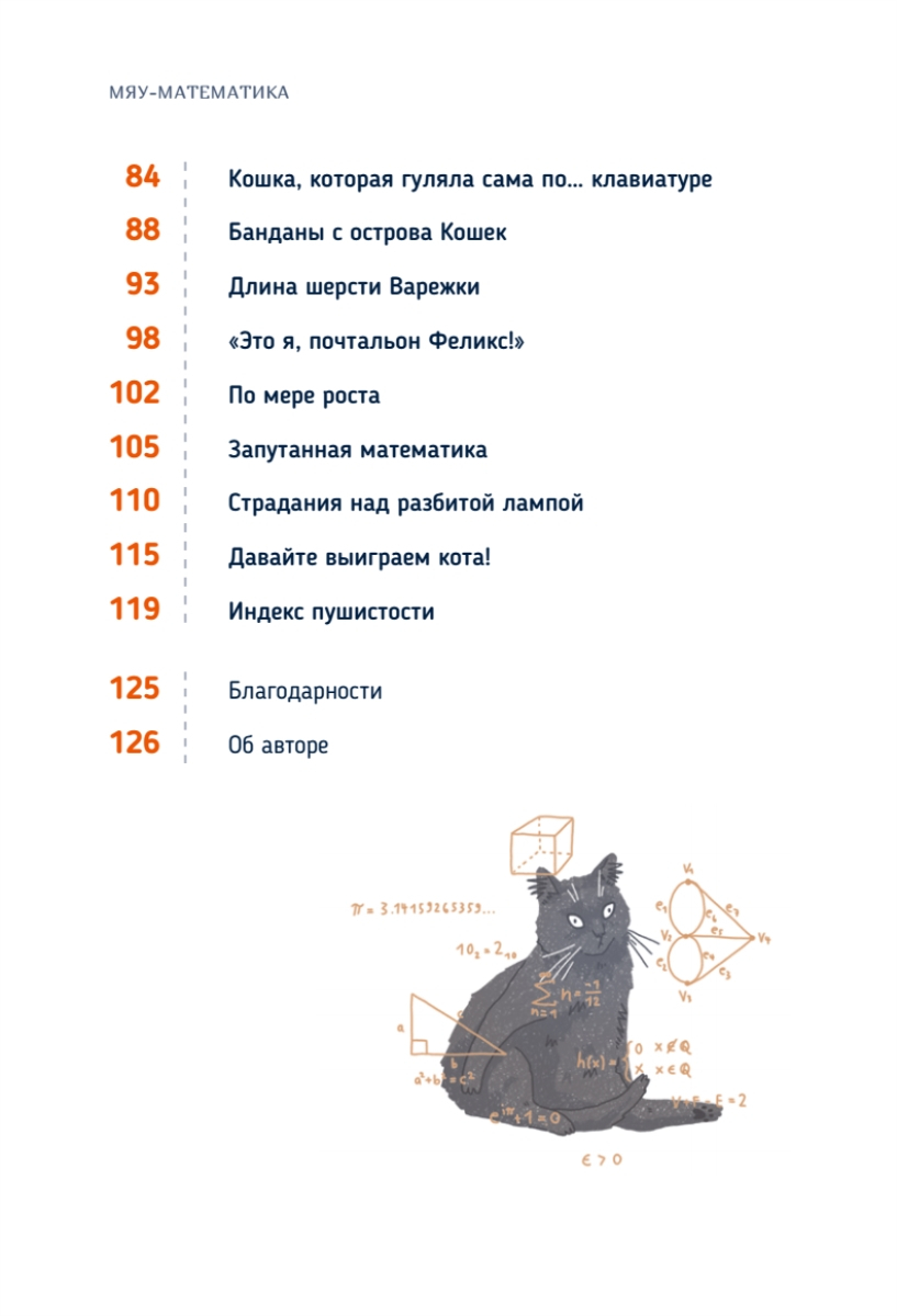 Эта книга – не просто о математике, а о том, что математика вездесуща, даже когда коты управляют миром. В книге нет заумных терминов, она написана легко, в формате веселых диалогов автора с его четырьмя котами-соавторами и бесконечным множеством их пушистых товарищей по математическим играм.