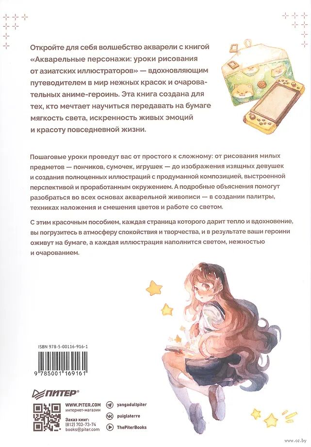 Откройте для себя волшебство акварели с книгой "Акварельные персонажи: уроки рисования от азиатских иллюстраторов" – вдохновляющим путеводителем в мир нежных красок и очаровательных аниме-героинь. Эта книга создана для тех, кто мечтает научиться передавать на бумаге мягкость света, искренность живых эмоций и красоту повседневной жизни.