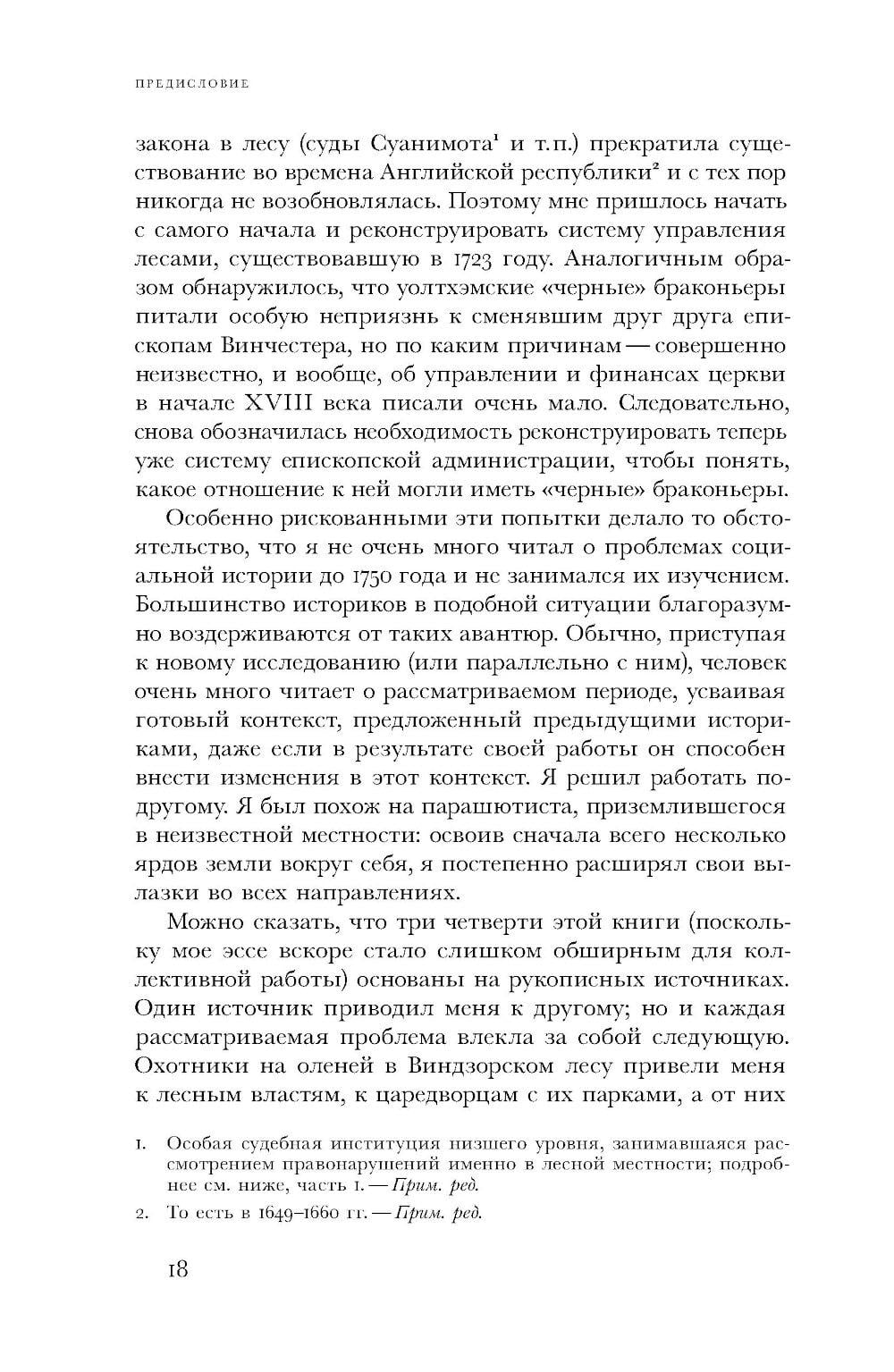 Книга Эдварда Томпсона – классика исторической науки, одного из отцов-основателей британской "новой социальной истории" – возникла из идеи написать развернутый микроисторический комментарий к этому закону.