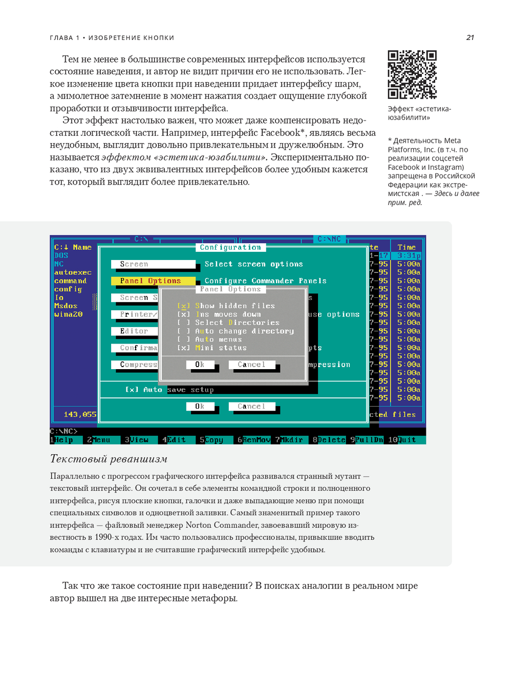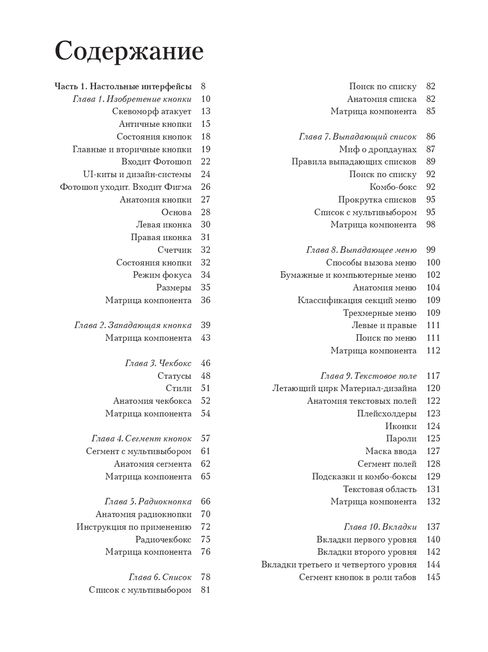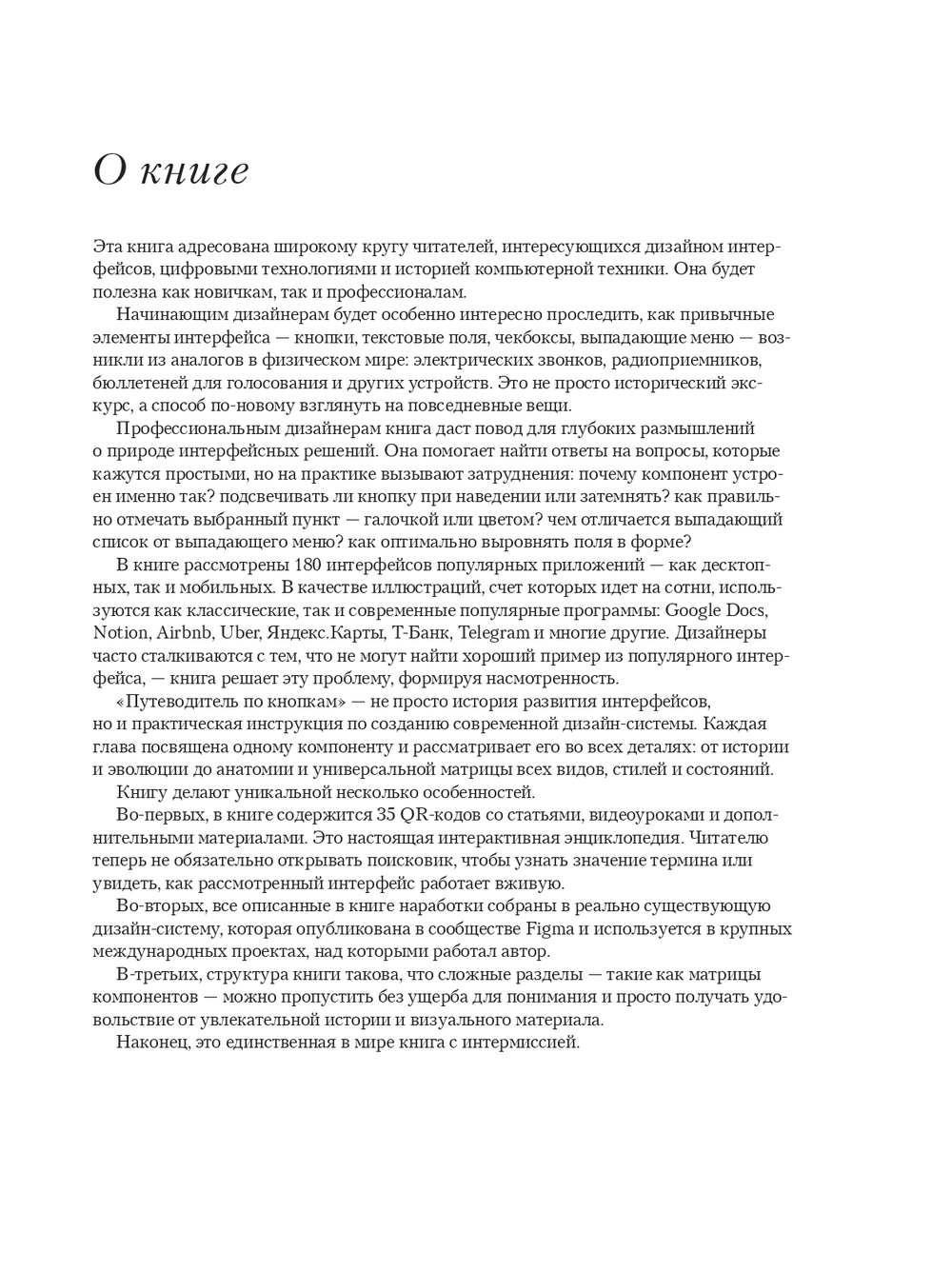 Цельная история о логике интерфейсов: от первых Xerox Alto и Apple Lisa до macOS/Windows, от Newton до iPhone/Android и дальше – к смешанной реальности (Meta Quest, Apple Vision). На конкретных примерах и сотнях иллюстраций автор последовательно разбирает происхождение стандартных компонентов (кнопки, чекбоксы, списки, меню, поля ввода, вкладки), их анатомию и все состояния – и как на их основе собрать собственную универсальную дизайн-систему вместо бездумного копирования шаблонов.