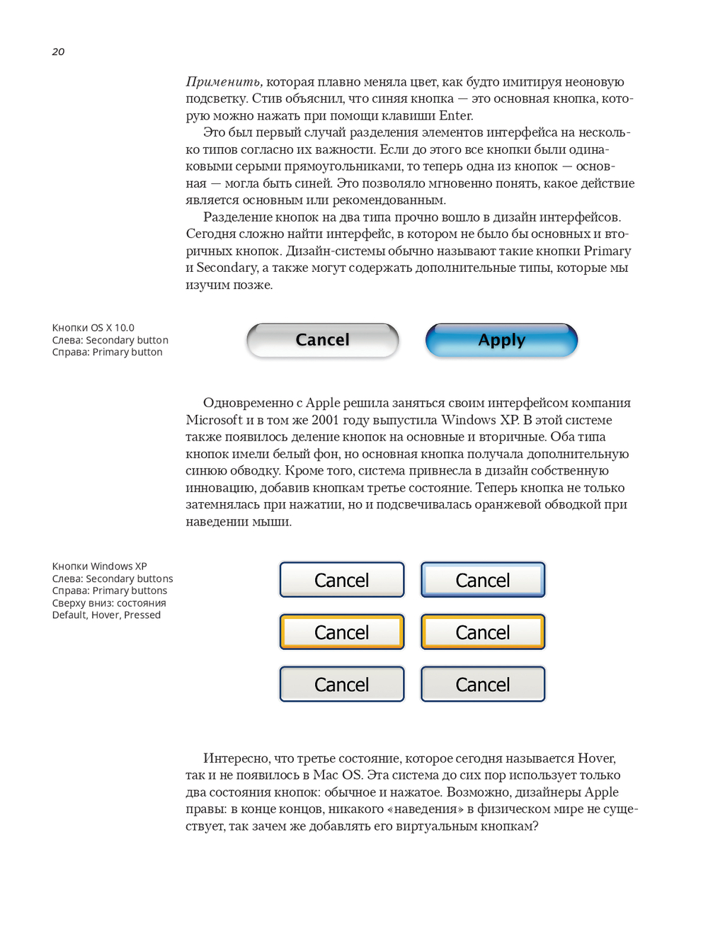 Вы увидите, зачем в OS X впервые отделили основную кнопку от вторичных, как Windows привнесла "наведение", почему iOS отказалась от скевоморфизма – и как эти исторические повороты превратились в сегодняшние правила, которые реально повышают юзабилити и скорость разработки.