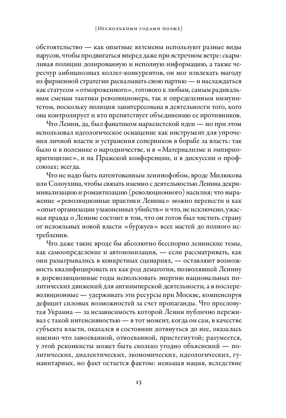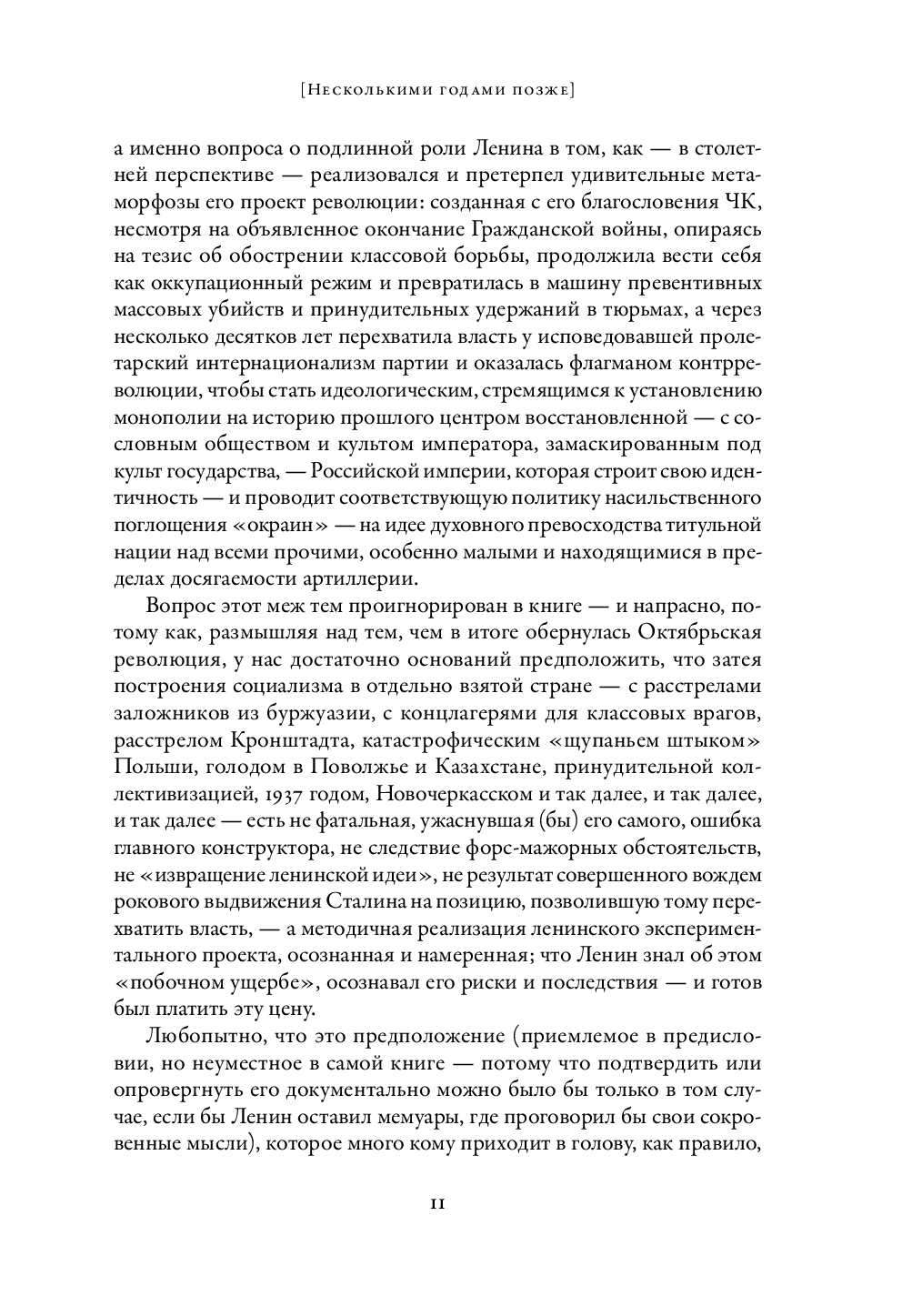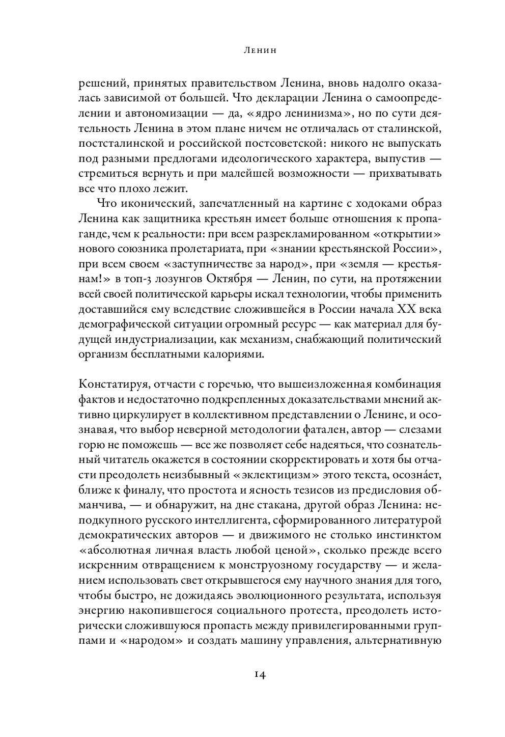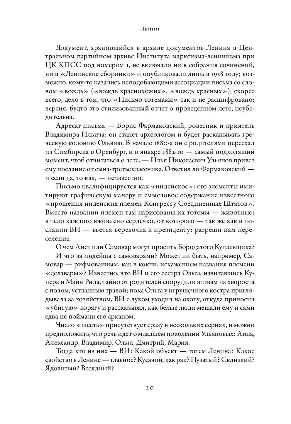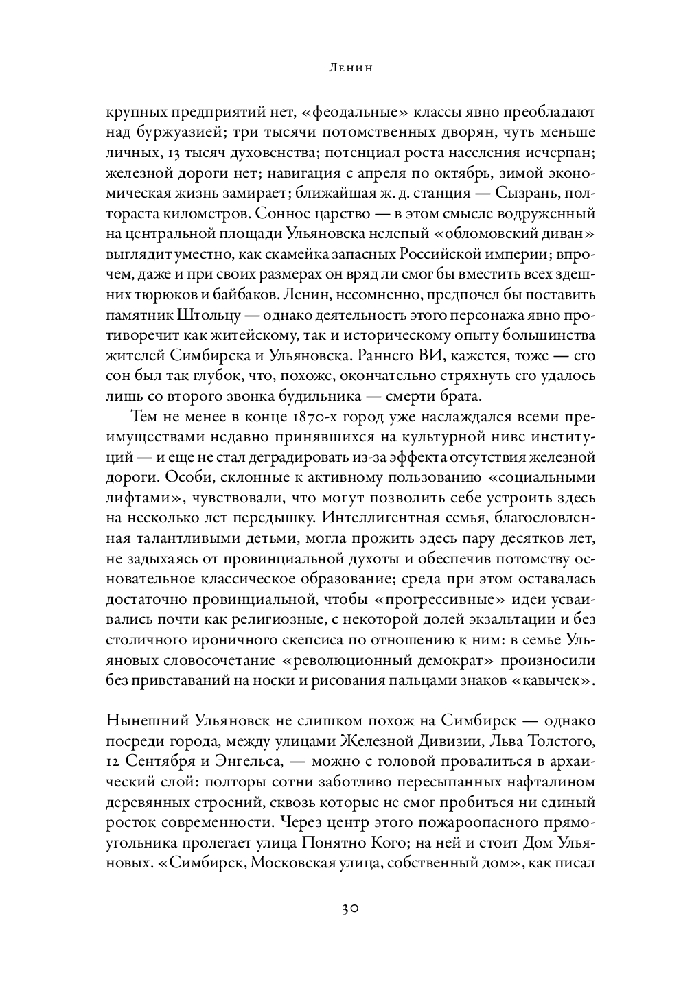Полная биография В. И. Ленина (1870-1924) представляет собой ревизию ленинских текстов, поступков, партнерств, конфликтов – и не в последнюю очередь "ленинских мест". Автор методично следует за философом-изгоем, сумевшим изменить мир и оказаться на вершине социальной иерархии: от Шушенского до Капри, от "Что делать?" до "Государства и революции", от подполья до Кремля. Читатель, узнавший, как распорядился своей жизнью тот, кто еще сто лет назад казался "живее всех живых", а в современной контрреволюционной России стал мертвее всех мертвых, увидит, что "Ленин" – больше, чем сумма исторических событий: пространство, инструмент и среда для инакомыслия; неисчерпаемый источник образов, прецедентов, альтернатив, утопических идей и прагматичных практик; код к расшифровке сегодняшней действительности – и страховка от увязания в дурной бесконечности.