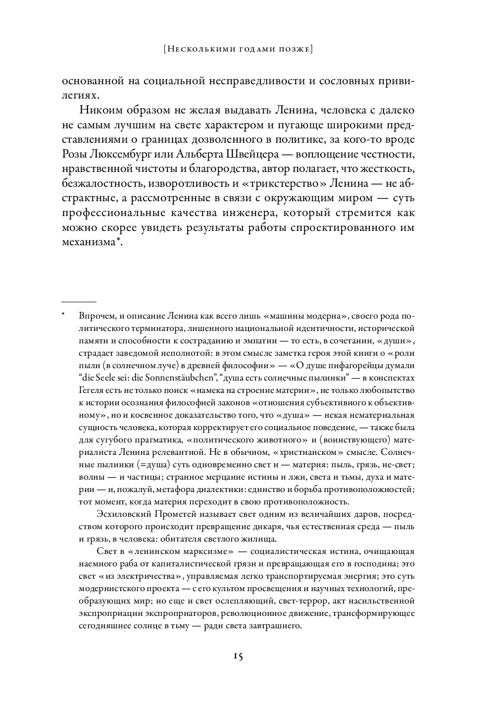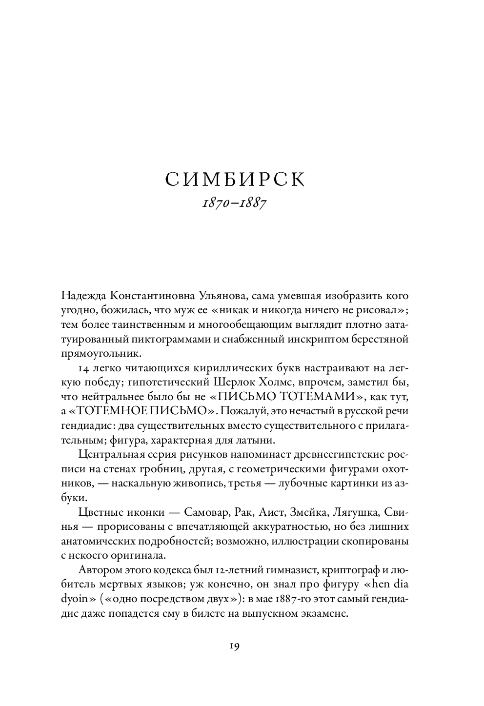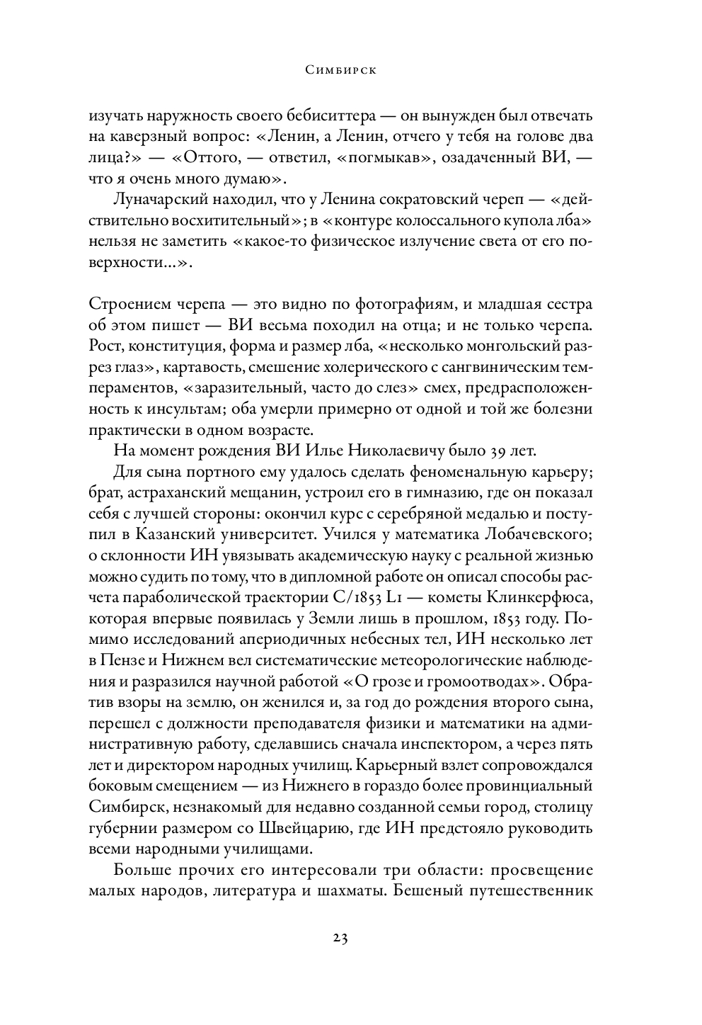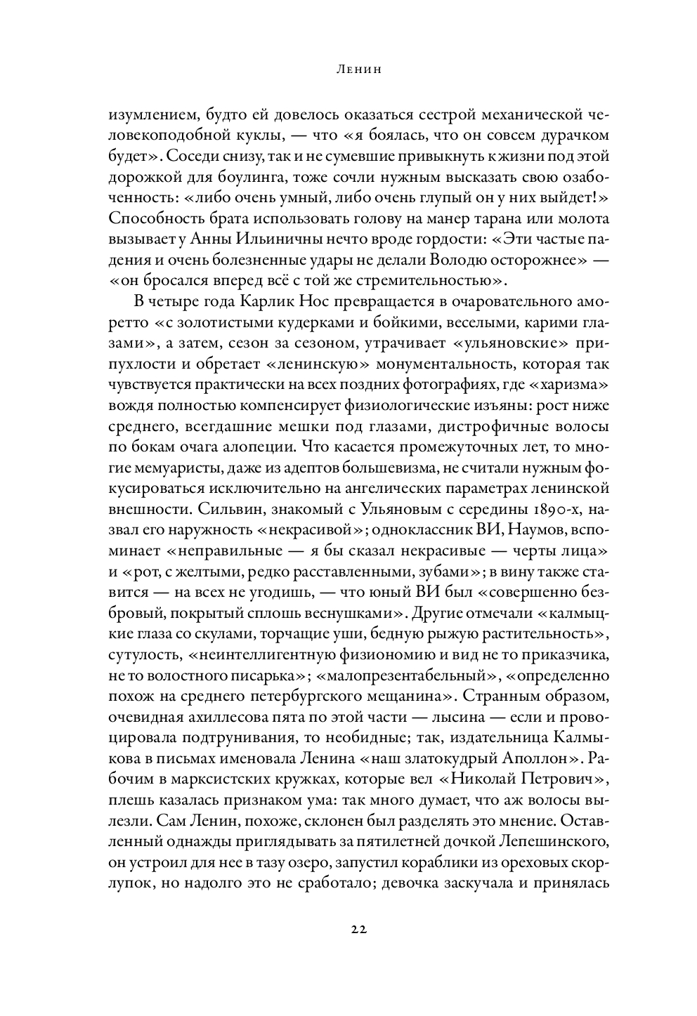 Полная биография В. И. Ленина (1870-1924) представляет собой ревизию ленинских текстов, поступков, партнерств, конфликтов – и не в последнюю очередь "ленинских мест". Автор методично следует за философом-изгоем, сумевшим изменить мир и оказаться на вершине социальной иерархии: от Шушенского до Капри, от "Что делать?" до "Государства и революции", от подполья до Кремля. Читатель, узнавший, как распорядился своей жизнью тот, кто еще сто лет назад казался "живее всех живых", а в современной контрреволюционной России стал мертвее всех мертвых, увидит, что "Ленин" – больше, чем сумма исторических событий: пространство, инструмент и среда для инакомыслия; неисчерпаемый источник образов, прецедентов, альтернатив, утопических идей и прагматичных практик; код к расшифровке сегодняшней действительности – и страховка от увязания в дурной бесконечности.