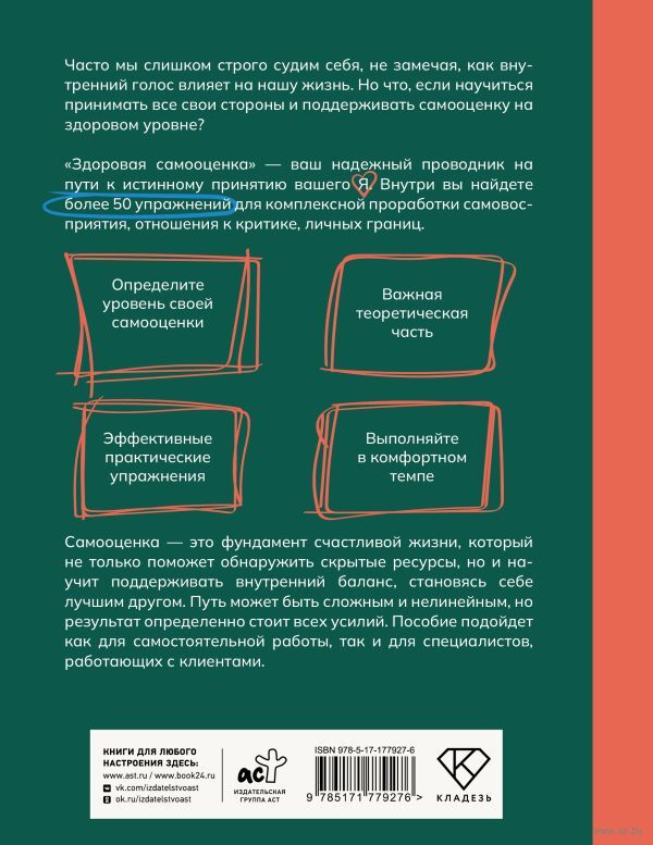 Cамооценка – это фундамент счастливой жизни, который не только поможет обнаружить скрытые ресурсы, но и научит поддерживать внутренний баланс, становясь себе лучшим другом. Путь может быть сложным и нелинейным, но результат определенно стоит всех усилий. Пособие подойдет как для самостоятельной работы, так и для специалистов, работающих с клиентами.