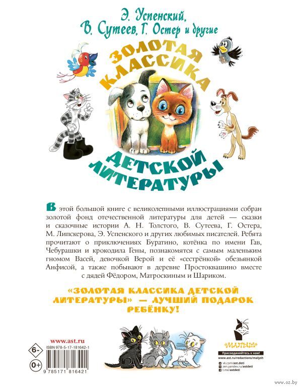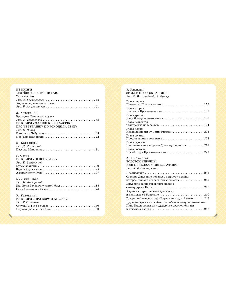 В книге представлен золотой фонд детской отечественной литературы, куда вошли произведения таких признанных классиков, как А. Н. Толстой, В. Сутеев, Г. Остер, М. Липскеров, Е. Карганова, Э. Успенский. Читатели познакомятся с самыми знаменитыми героями сказок и сказочных историй авторов – Чебурашкой и крокодилом Геной, девочкой Верой и обезьянкой Анфисой, котёнком по имени Гав, Буратино, самым маленьким гномом Васей, дядей Фёдором, Матроскиным, Шариком и многими другими. Произведения сборника неизменно входят в рекомендательные списки обязательного чтения ребёнка.