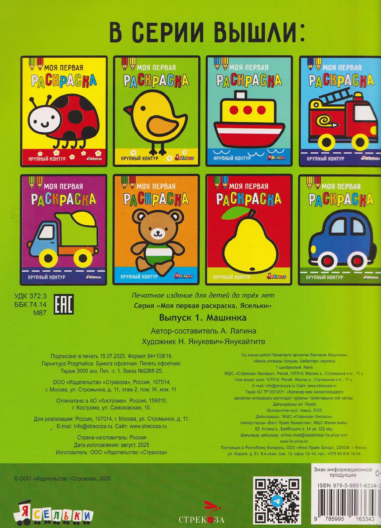 Моя первая раскраска Ясельки. Выпуск 1. Машинка