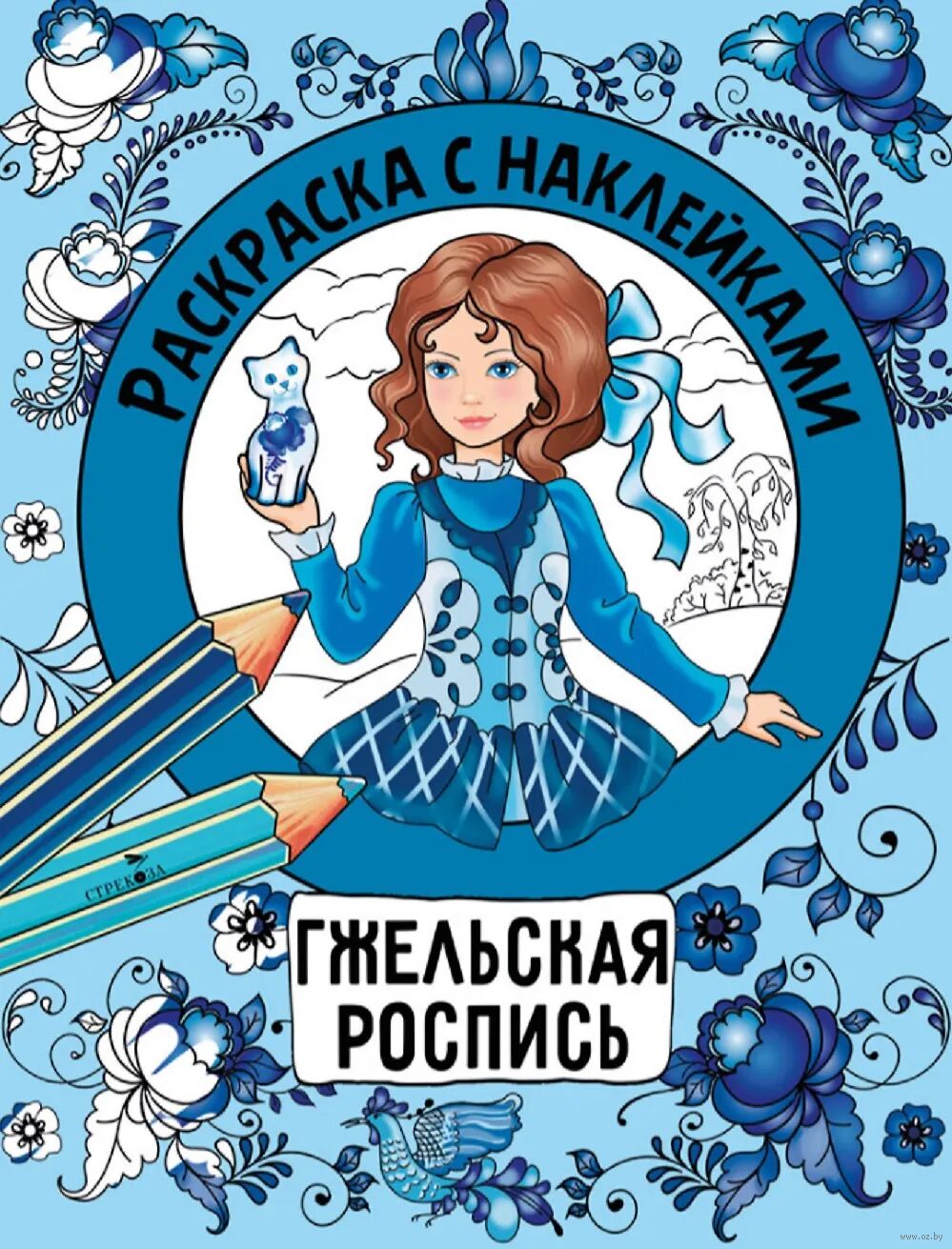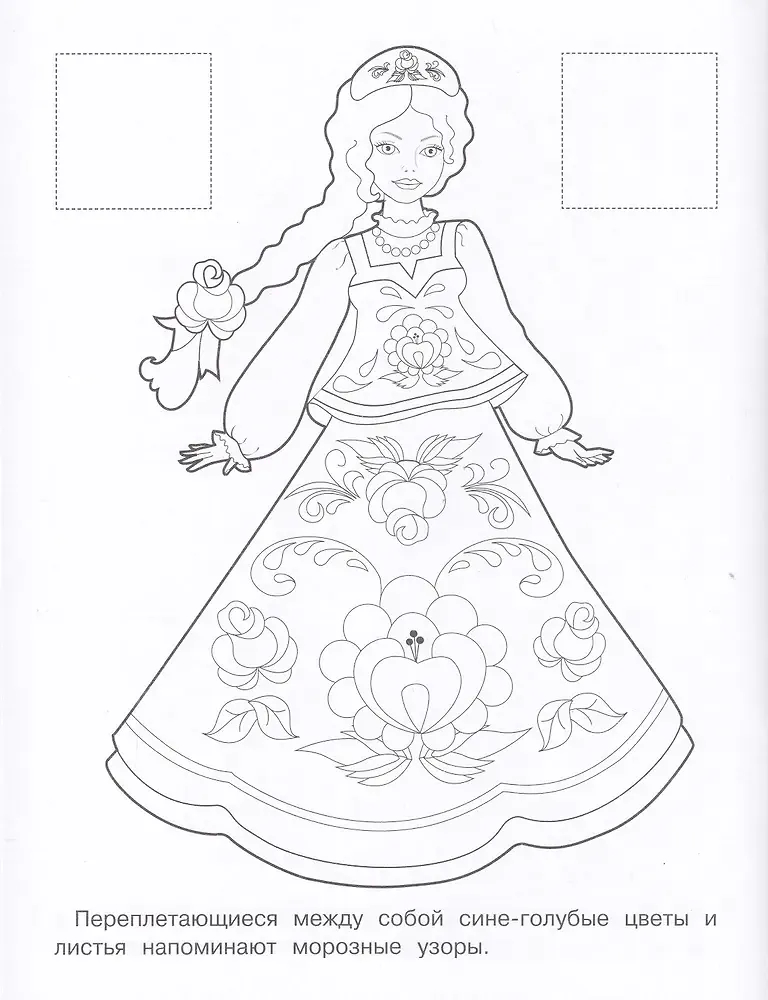 На страницах этой книжки русские красавицы познакомят ребенка с великолепной гжельской росписью. Он сможет раскрасить узоры на платьях и узнать об истории росписи, ее основных элементами и традиционной цветовой гамме. А наклейки подскажут, как раскрасить.