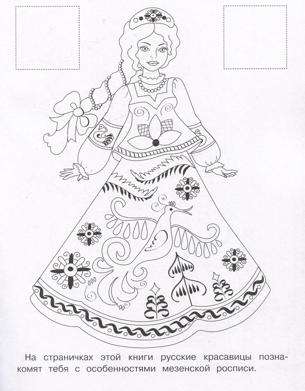 На страницах этой книжки русские красавицы познакомят ребенка с простой самобытной мезенской росписью. Он сможет раскрасить узоры на платьях и узнать об истории росписи, ее основных элементами и традиционной цветовой гамме. А наклейки подскажут, как раскрасить.