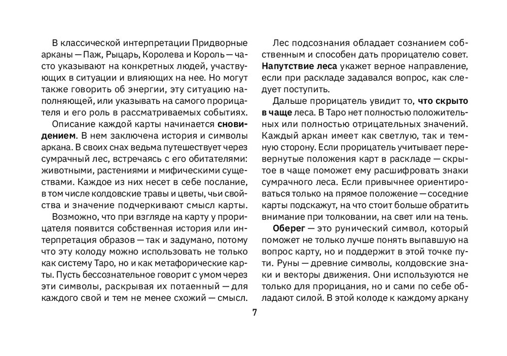 "Таро Дух леса" одинаково подойдет тем, кто только знакомится с Таро, и тем, кто уже давно практикует, но хочет добавить в работу что-то новое. Даже знакомые Арканы раскрываются в ней с другой стороны, а руны добавляют ощущение защиты и поддержки.