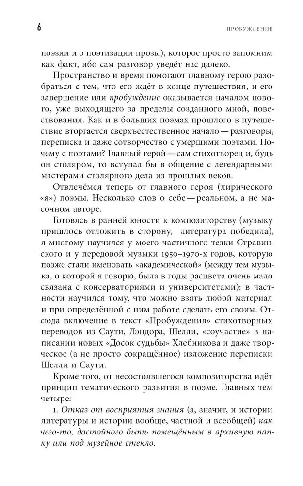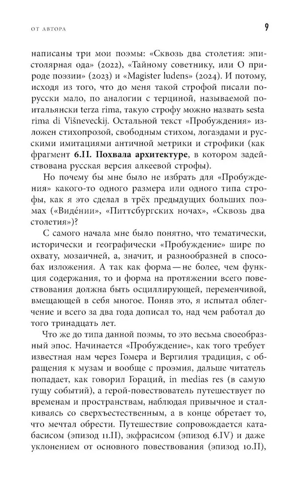 Поэма "Пробуждение" – главное стихотворное произведение И. Вишневецкого, над которым автор работал пятнадцать лет. Основные темы его – путешествие в пространстве и времени, обретение подлинного "я" и языка, на котором "я" говорит.