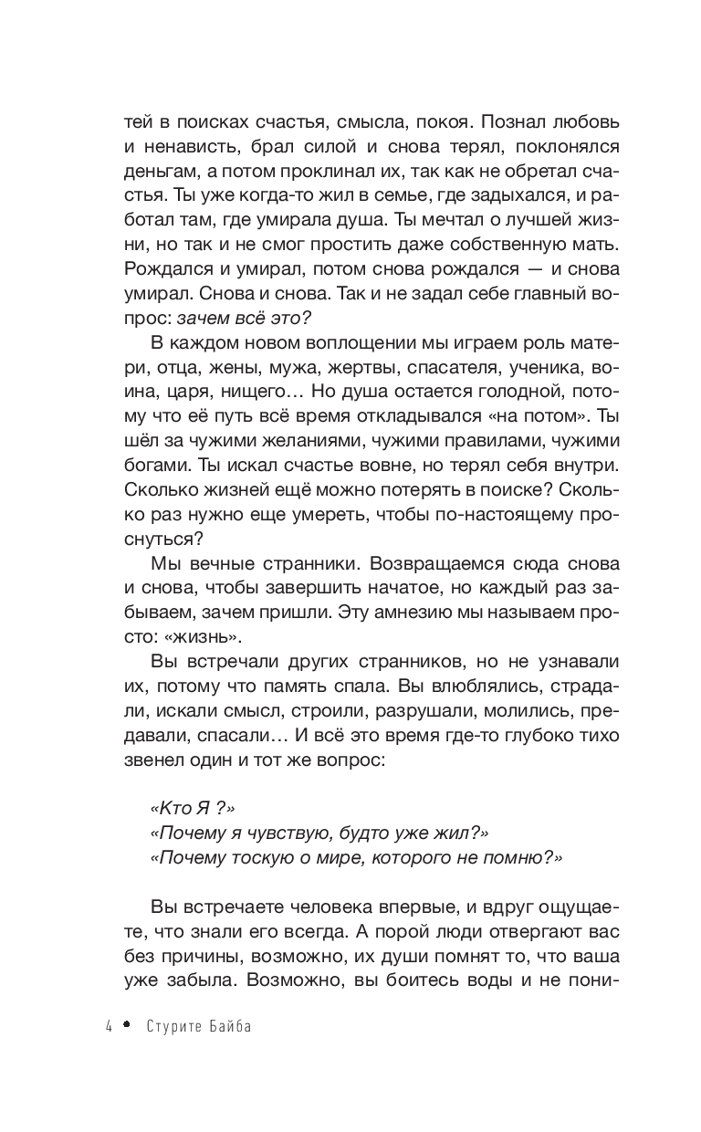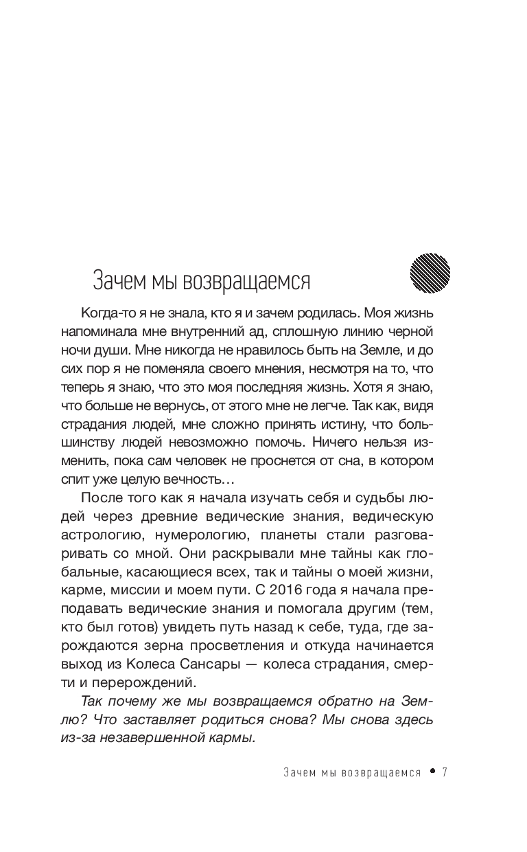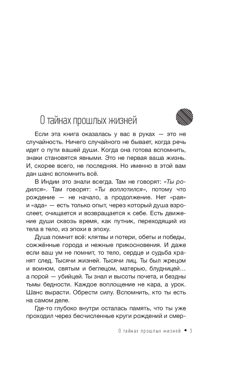 Вдохновленная древней индийской философией, книга раскрывает истинное понимание жизни как путь души, который не ограничивается одним воплощением. Здесь нет страхов, вины или запретов – только свобода осознания своей миссии и возможности роста.