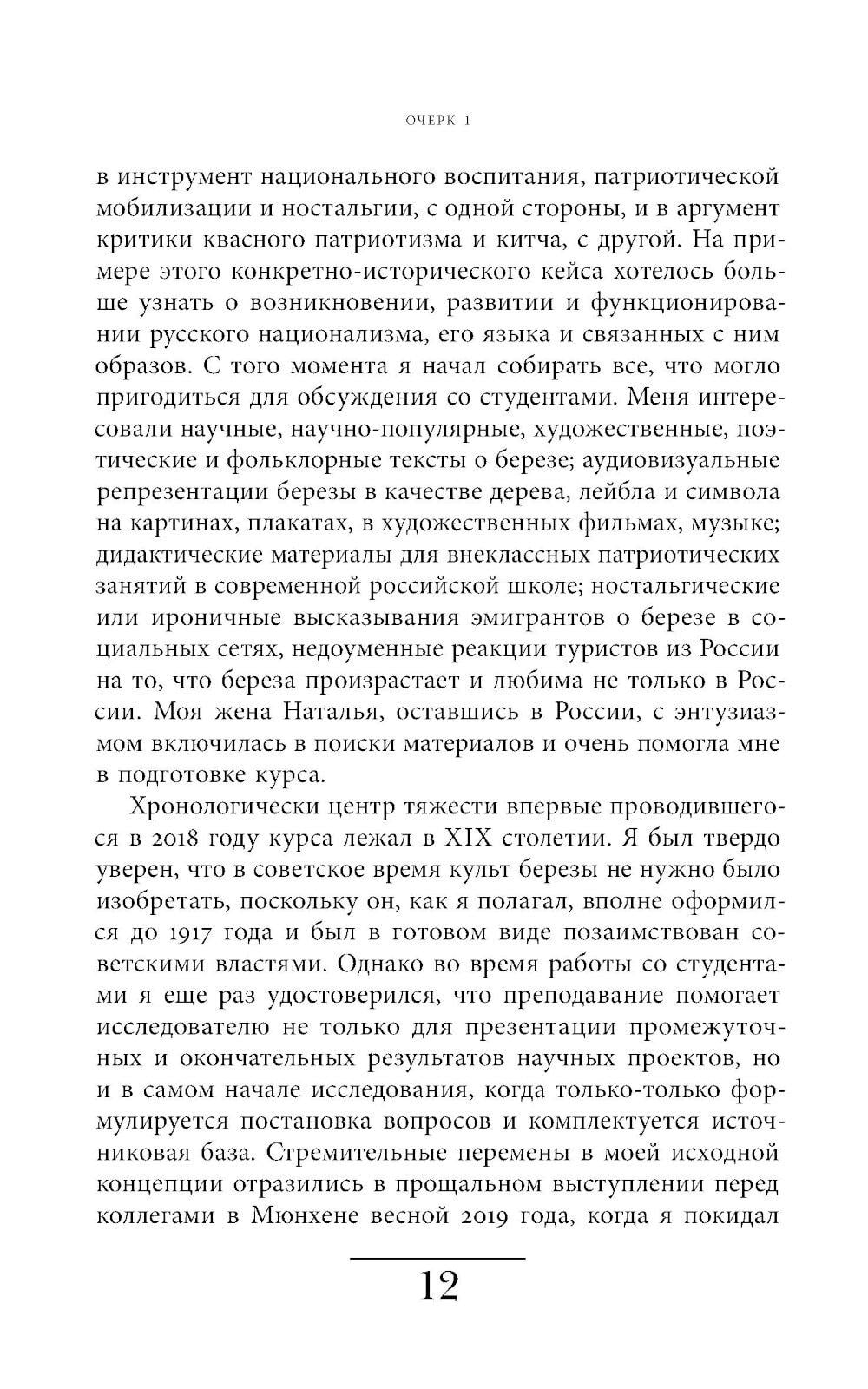 Книга Игоря и Натальи Нарских состоит из пятнадцати очерков: в каждом из них авторы разбирают конкретный сюжет, связанный с культурной историей главного русского дерева – от старинных крестьянских песен и поэтизации березы в XIX веке до танцевального ансамбля и валютных магазинов в СССР.