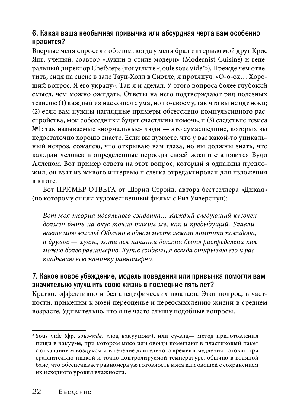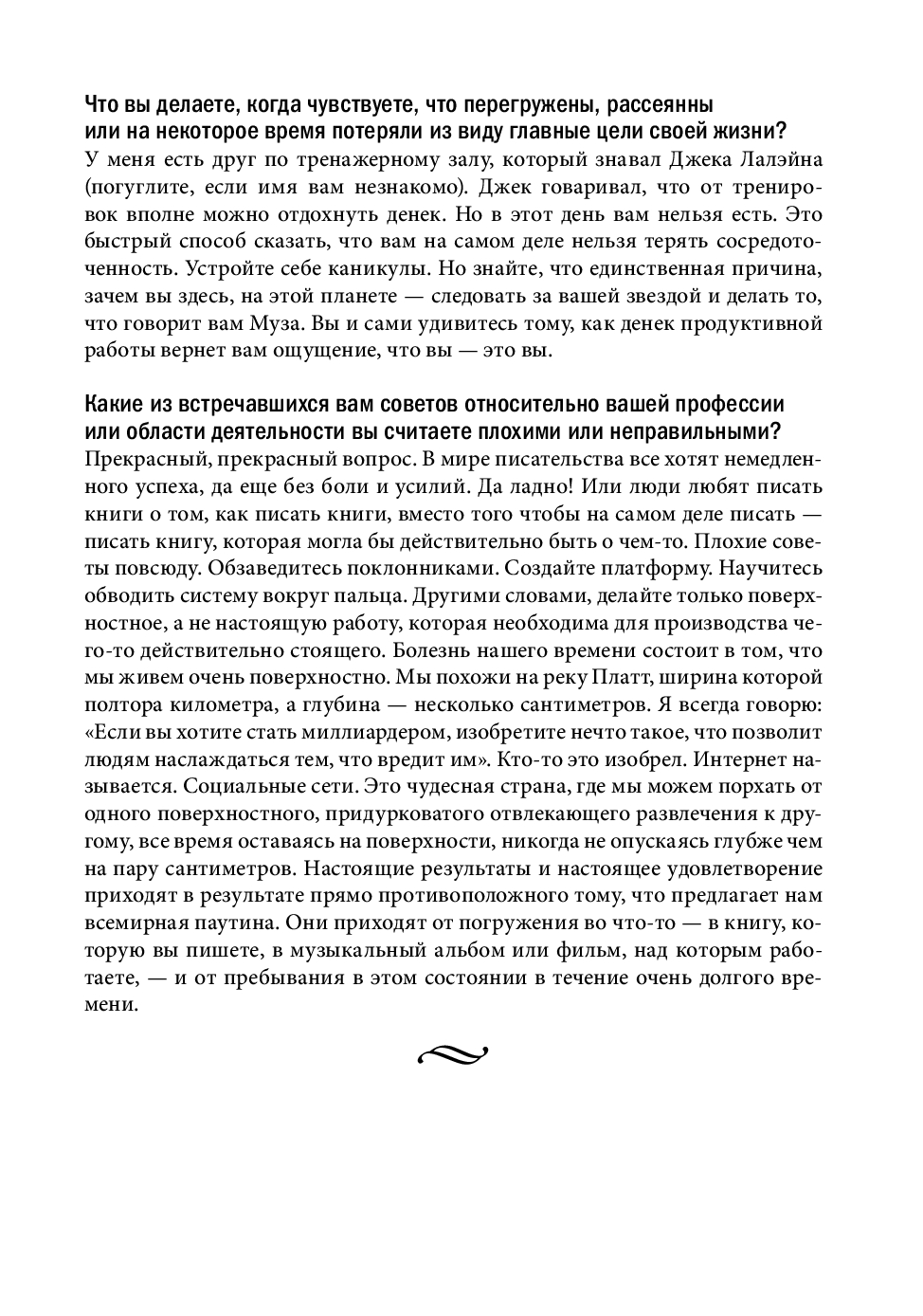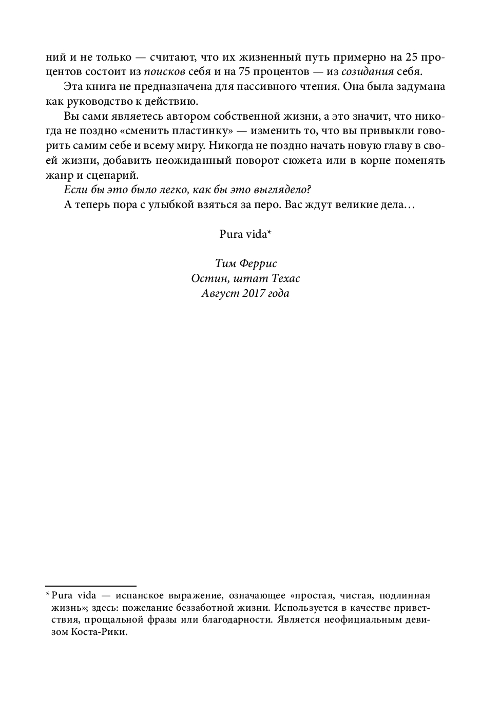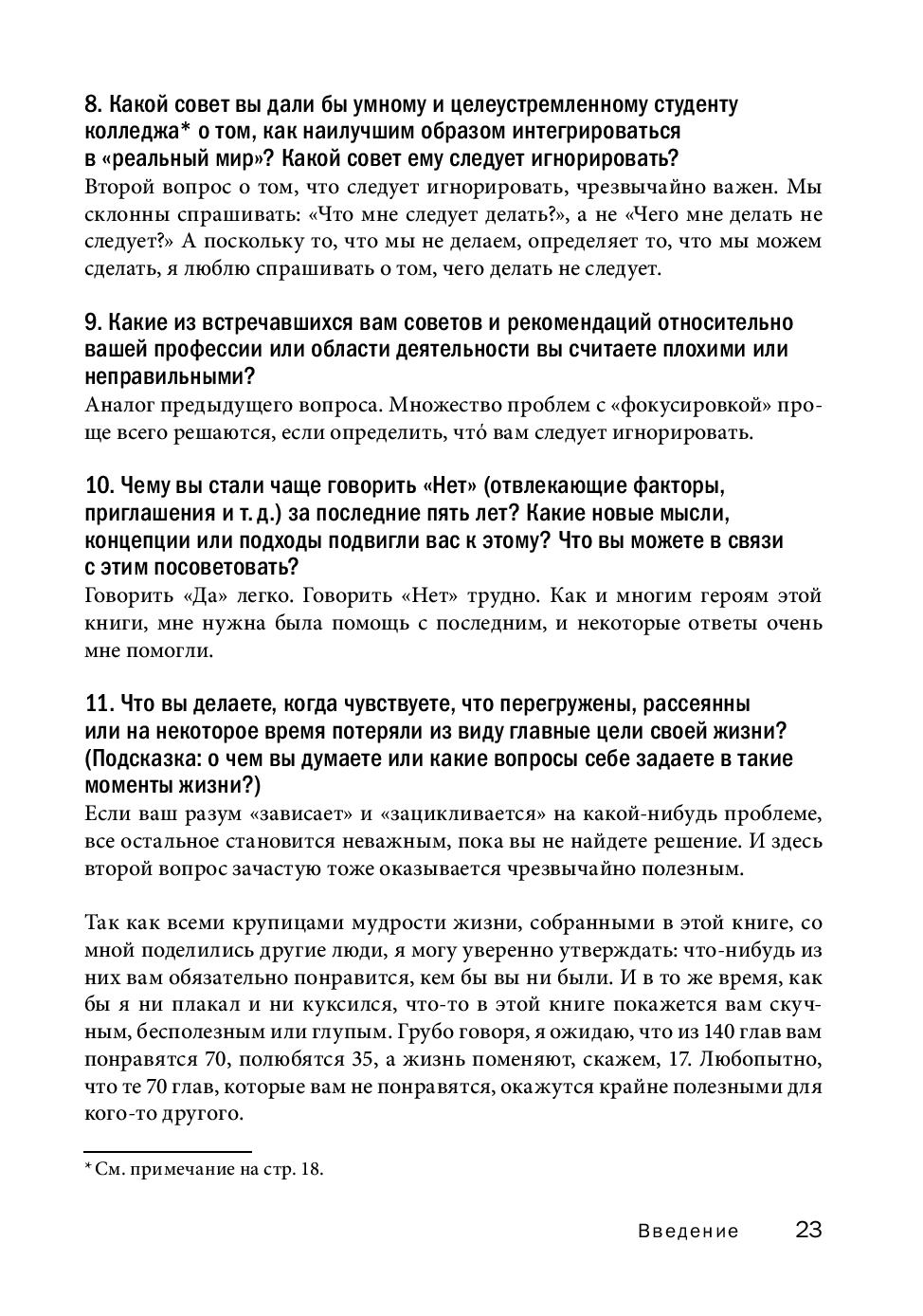 В этой книге, ставшей продолжением бестселлера «Инструменты гигантов», вы найдете концентрированный жизненный опыт более 130 выдающихся людей нашего времени, от успешных предпринимателей и спортсменов мирового класса до всемирно известных писателей и звезд шоу-бизнеса.