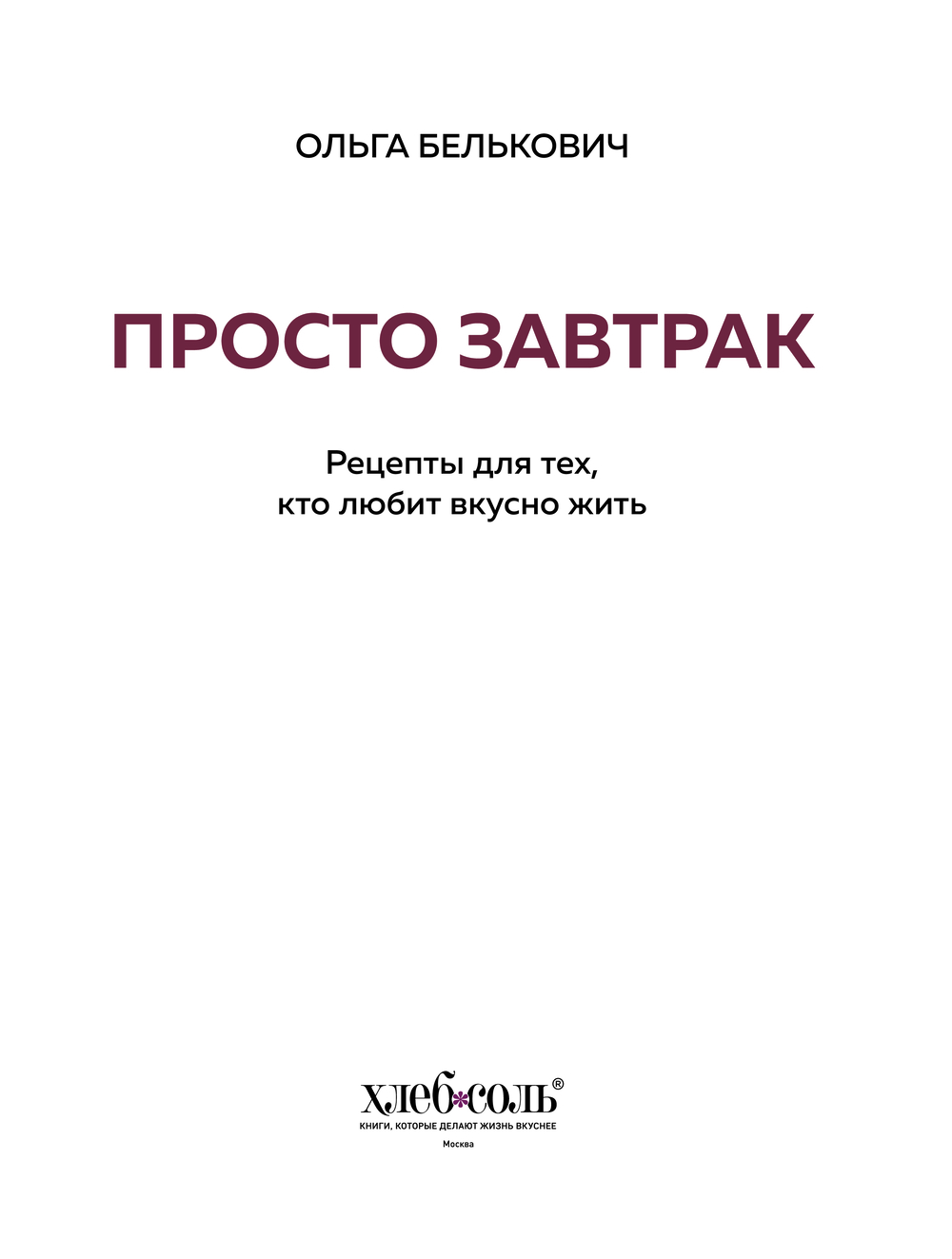 Доброе утро начинается здесь! Телеведущая и кулинар Ольга Белькович давно доказала, что завтрак может быть простым, быстрым и при этом – невероятно вкусным. Миллионы зрителей полюбили ее программу "Просто завтрак" на СТС, где каждое утро превращалось в маленький праздник. Теперь лучшие рецепты из передачи собраны в этой книге.