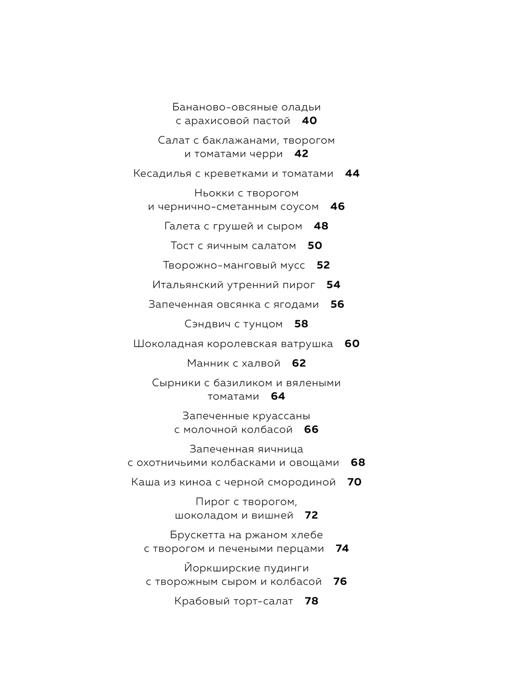 В книге вы найдете завтраки на любой вкус и случай: пирог с творогом, шоколадом и вишней, авокадо-тост с нутом, творожно-манговый мусс, боул с зеленой гречкой, запеченная овсянка с ягодами, сэндвич с тунцом... И еще десятки идей, которые наполнят ваше утро теплом и вдохновением.